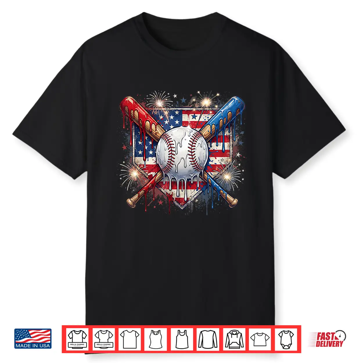 4Th Of July Baseball Drip Ice Cream Patriotic American Flag Shirt