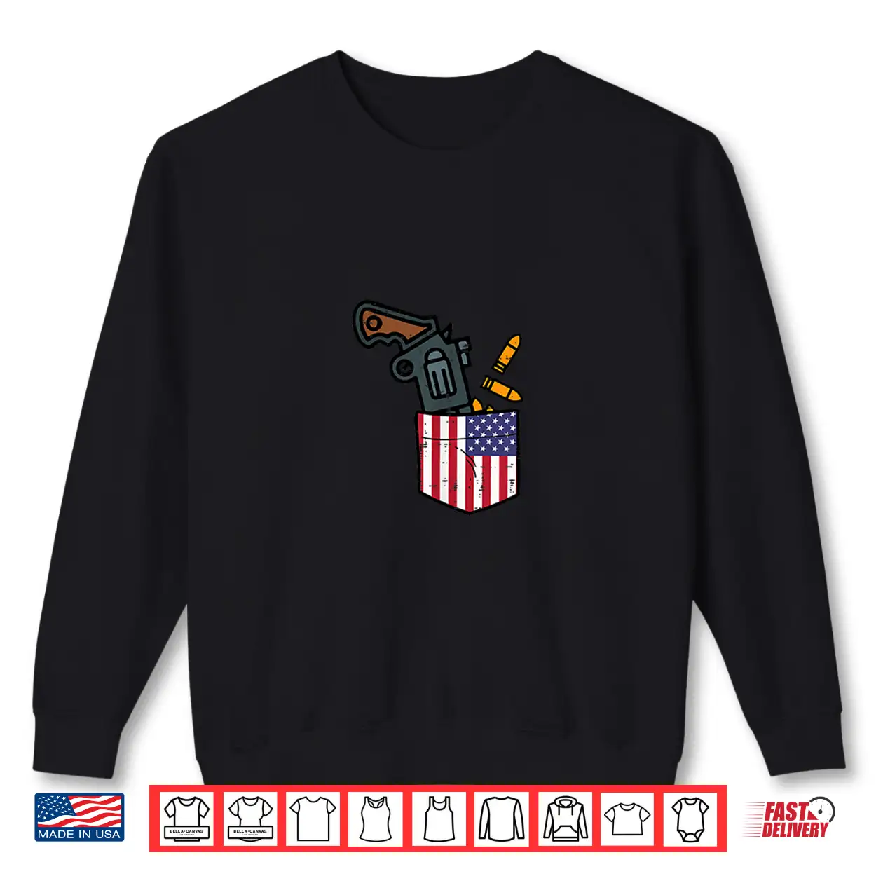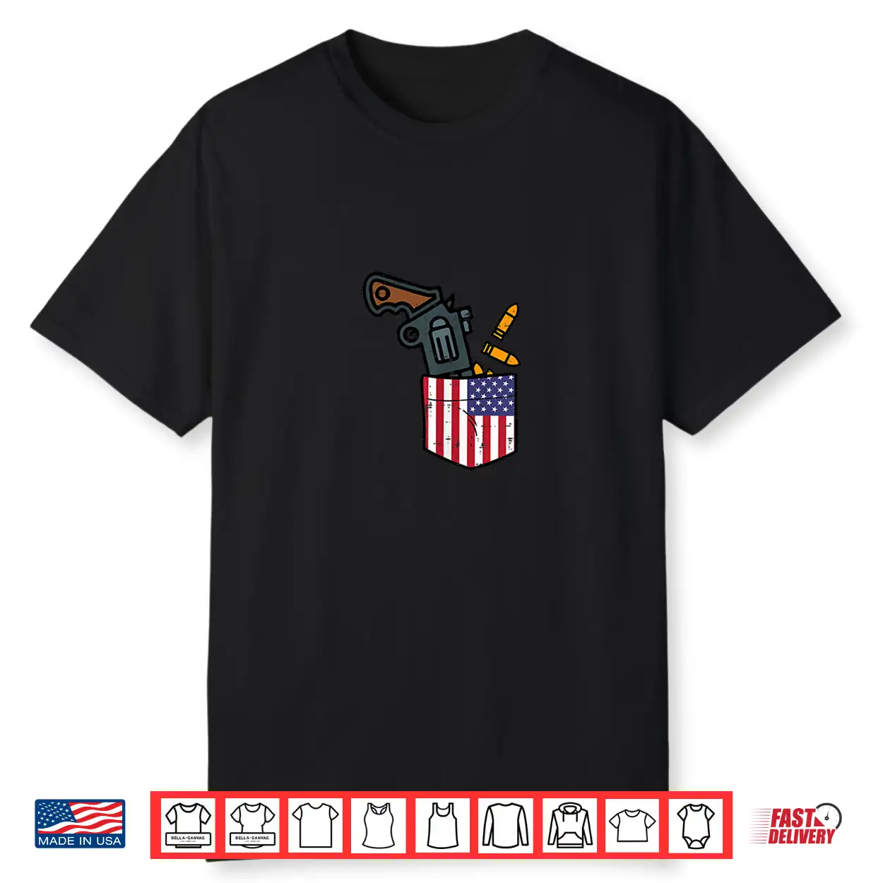 4Th Of July Gun Us Flag Pocket Independence Day America Men Shirt