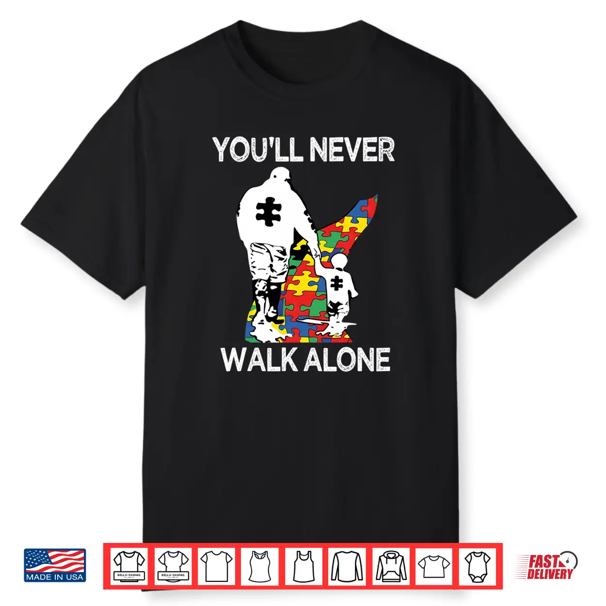 Autism Dad Support Alone Puzzle You’Ll Never Walk Shirt