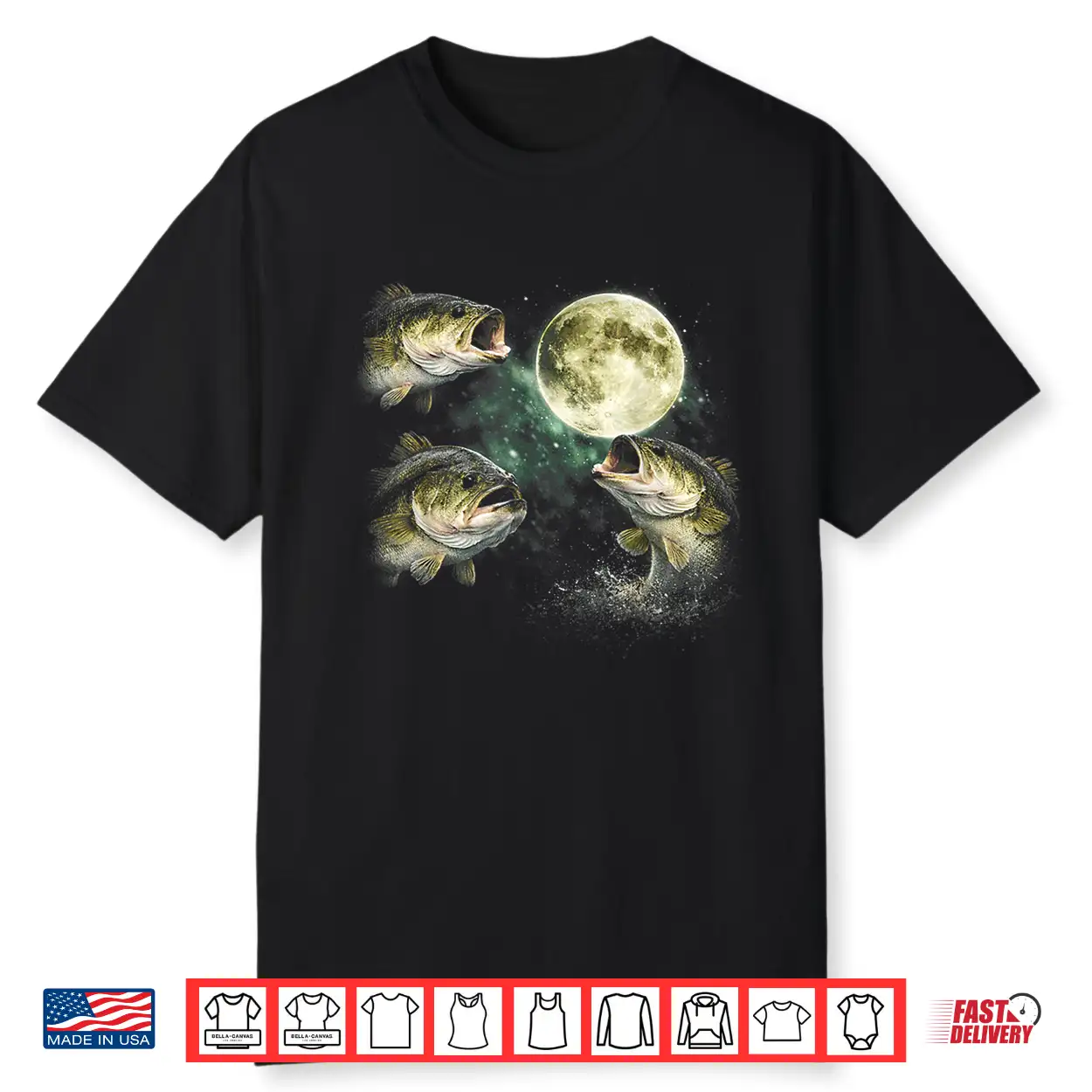 Bass Fish Howling To The Moon Vintage Angler Fisherman Shirt