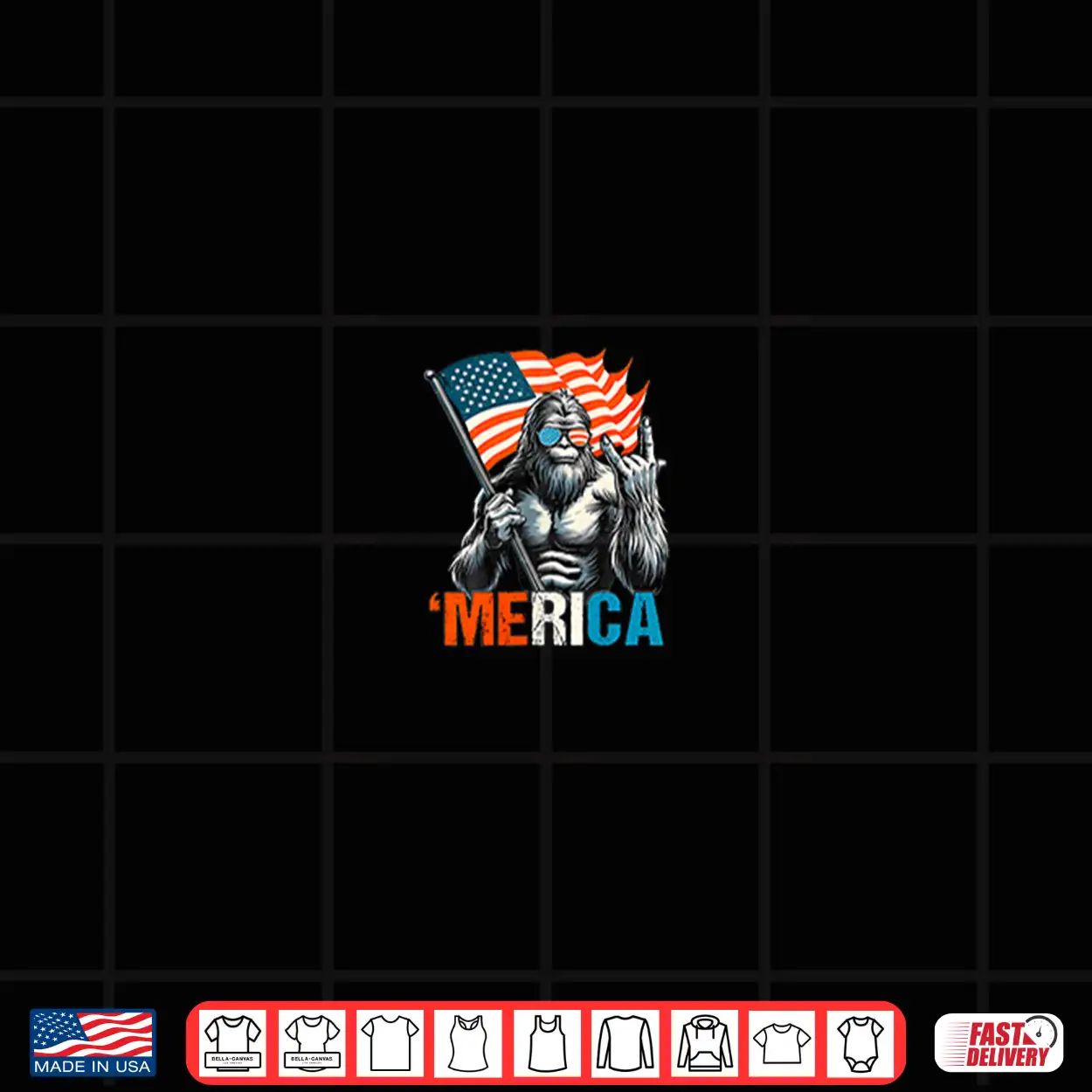 Bigfoot Merica Rock Usa American Flag 4Th Of July 2 Side Shirt