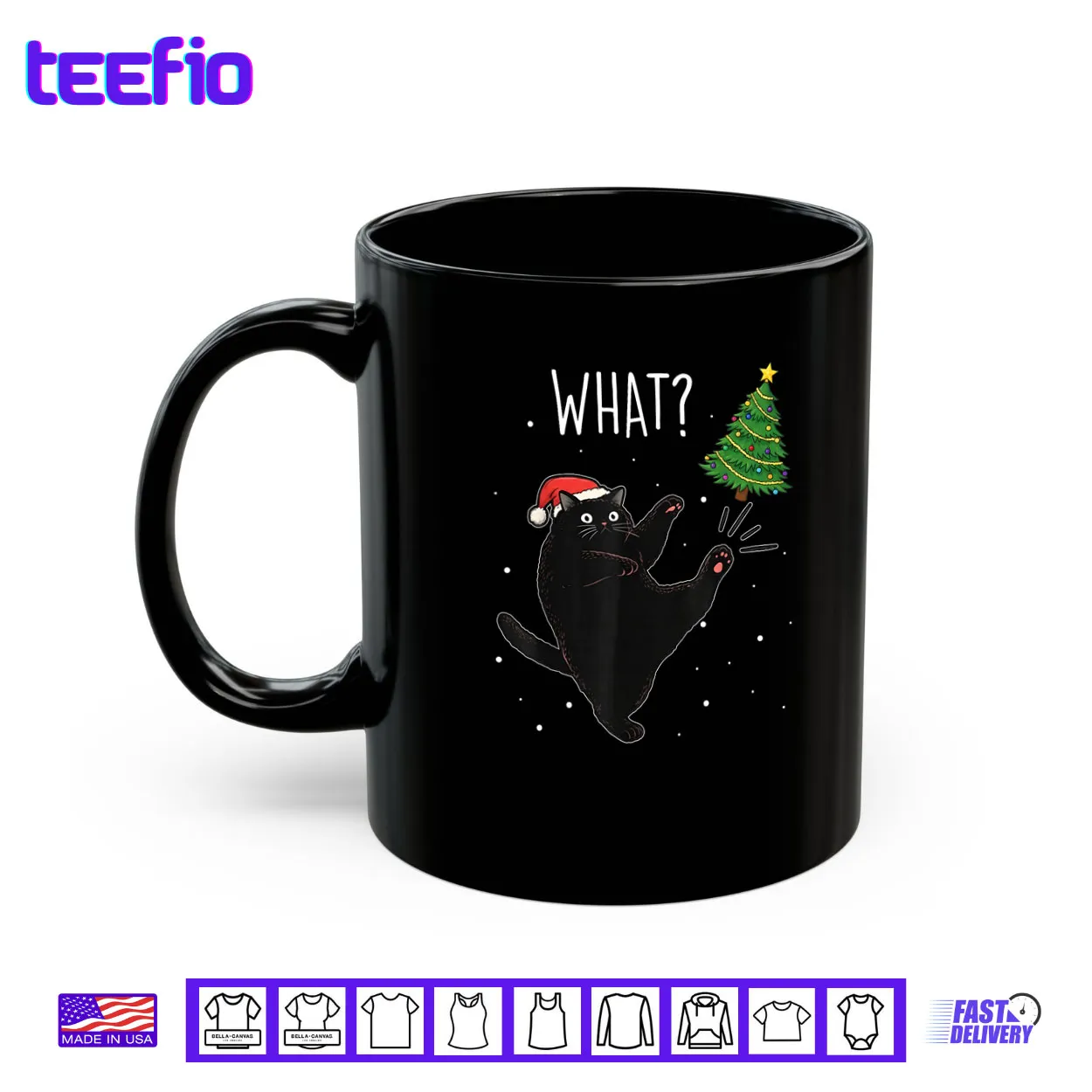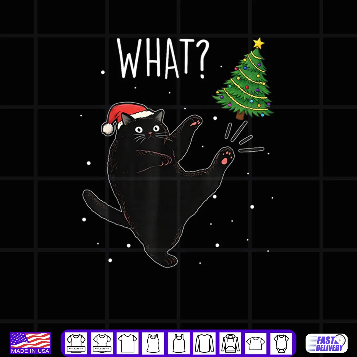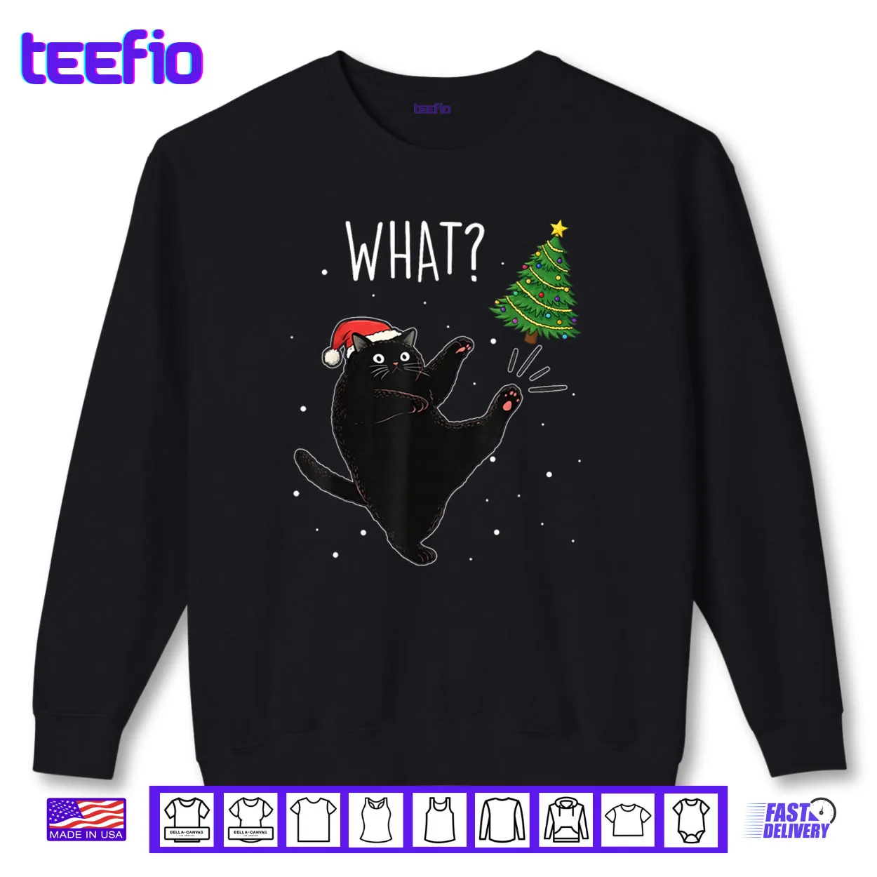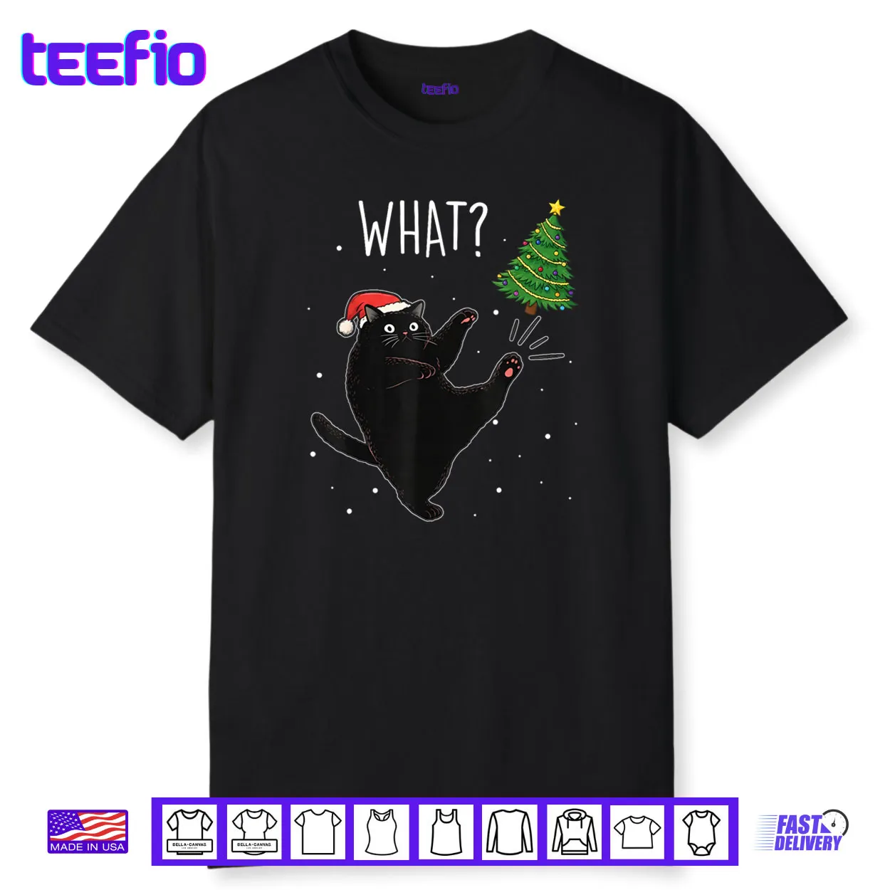 Black Cat What Christmas Tree Meme Xmas Shirt