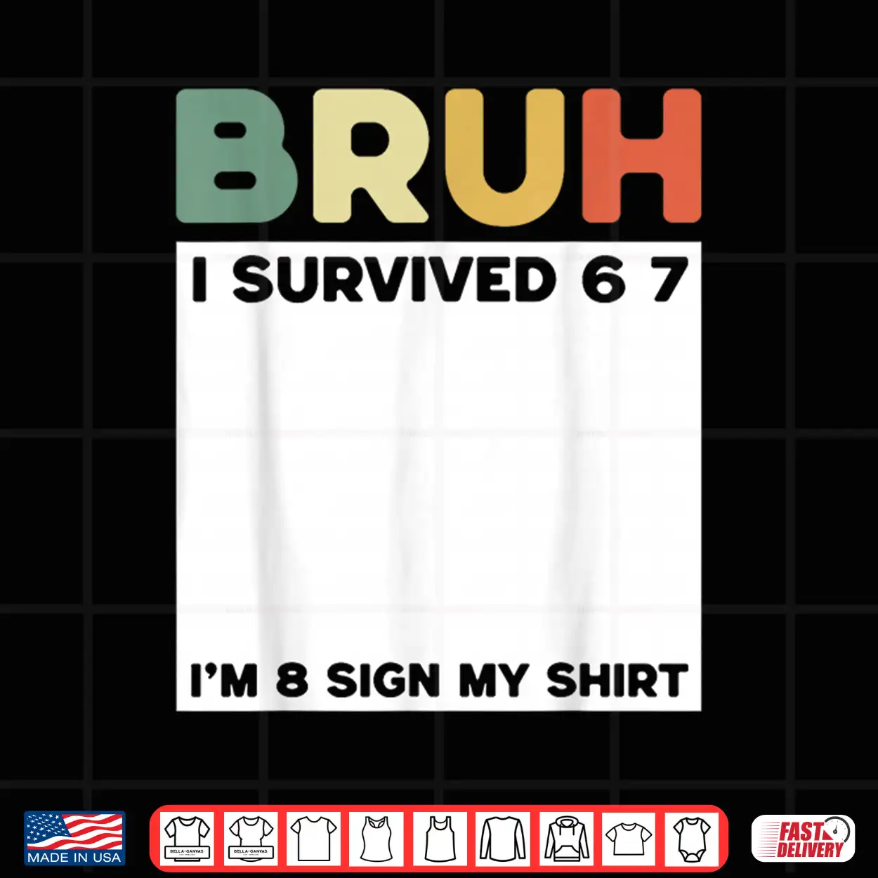 Bruh I Survived Six Seven I’M 8 Years Old Sign My Shirt Fun Shirt