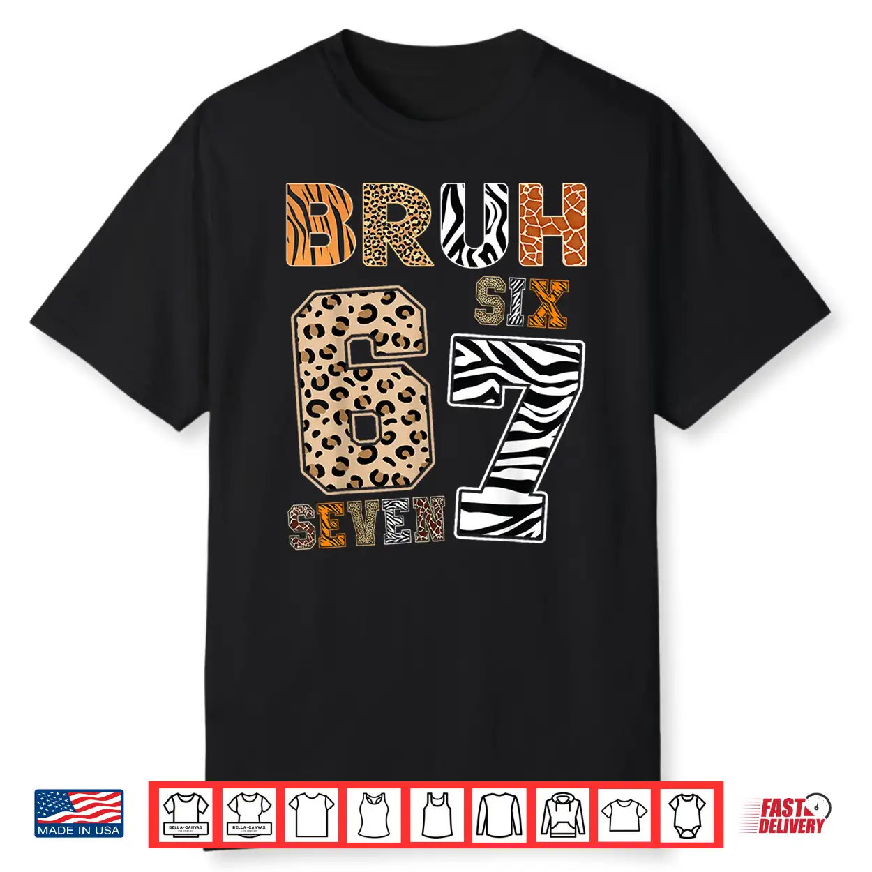 Bruh Six Seven 67 Meme Tee Wild Animal Print Kids Boys Girls Shirt