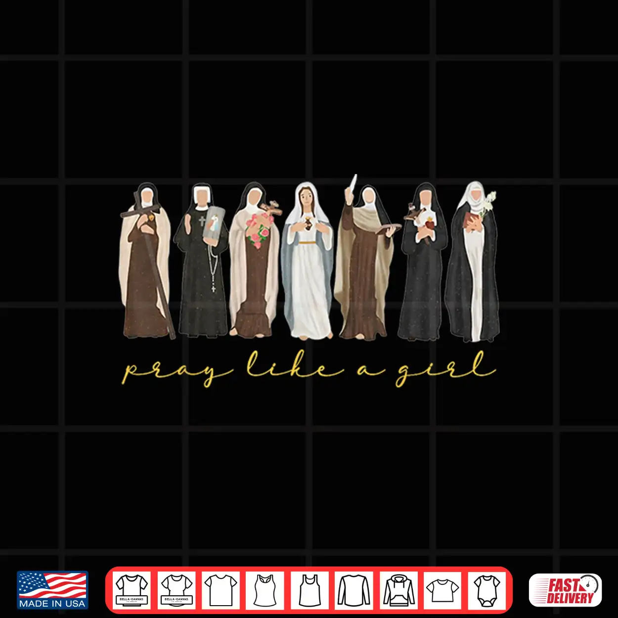 Catholic Saint Pray Like A Girl Women Religious Christian Shirt