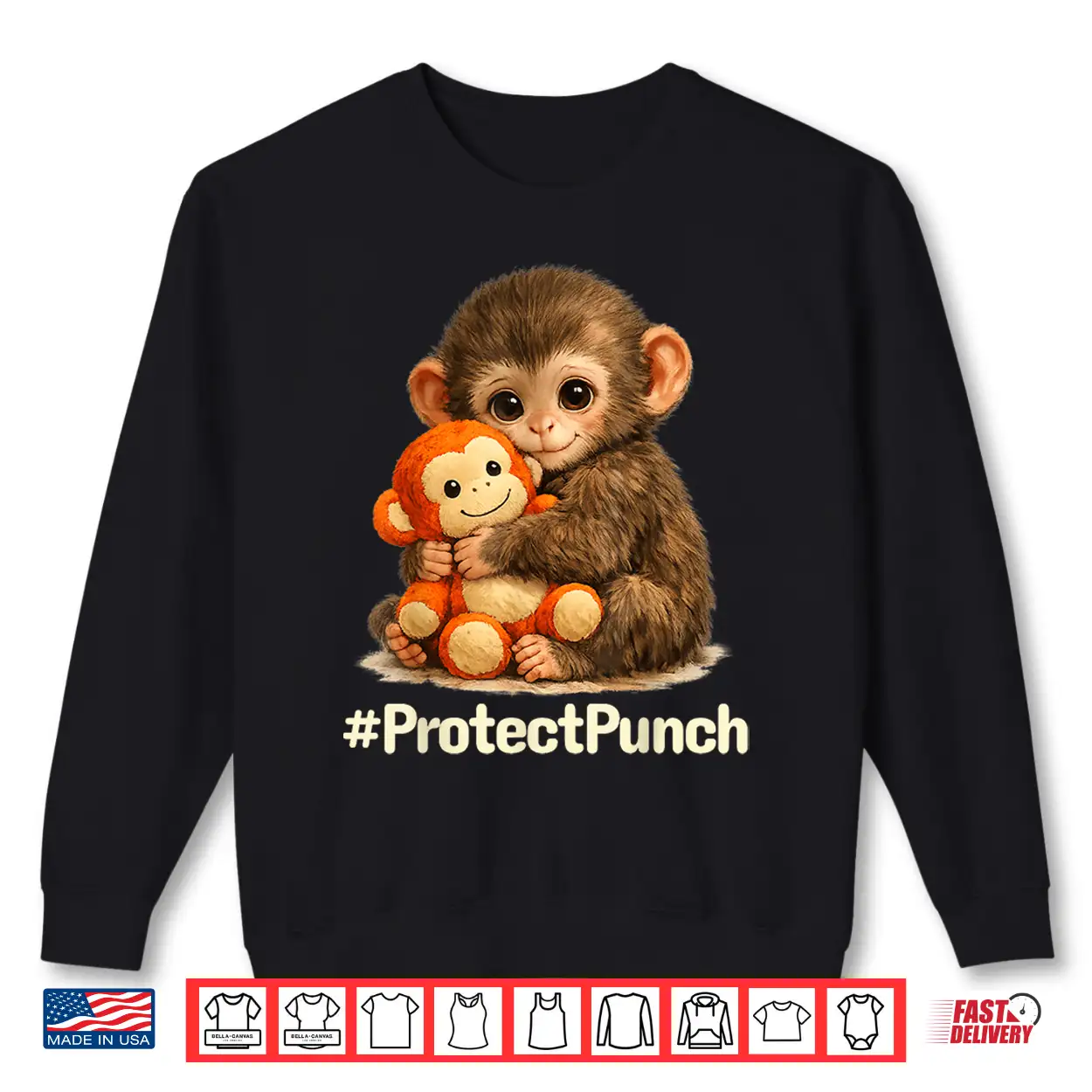 Cute Little Monkey Hugging Bear Plush Protect Punch Macaque Shirt