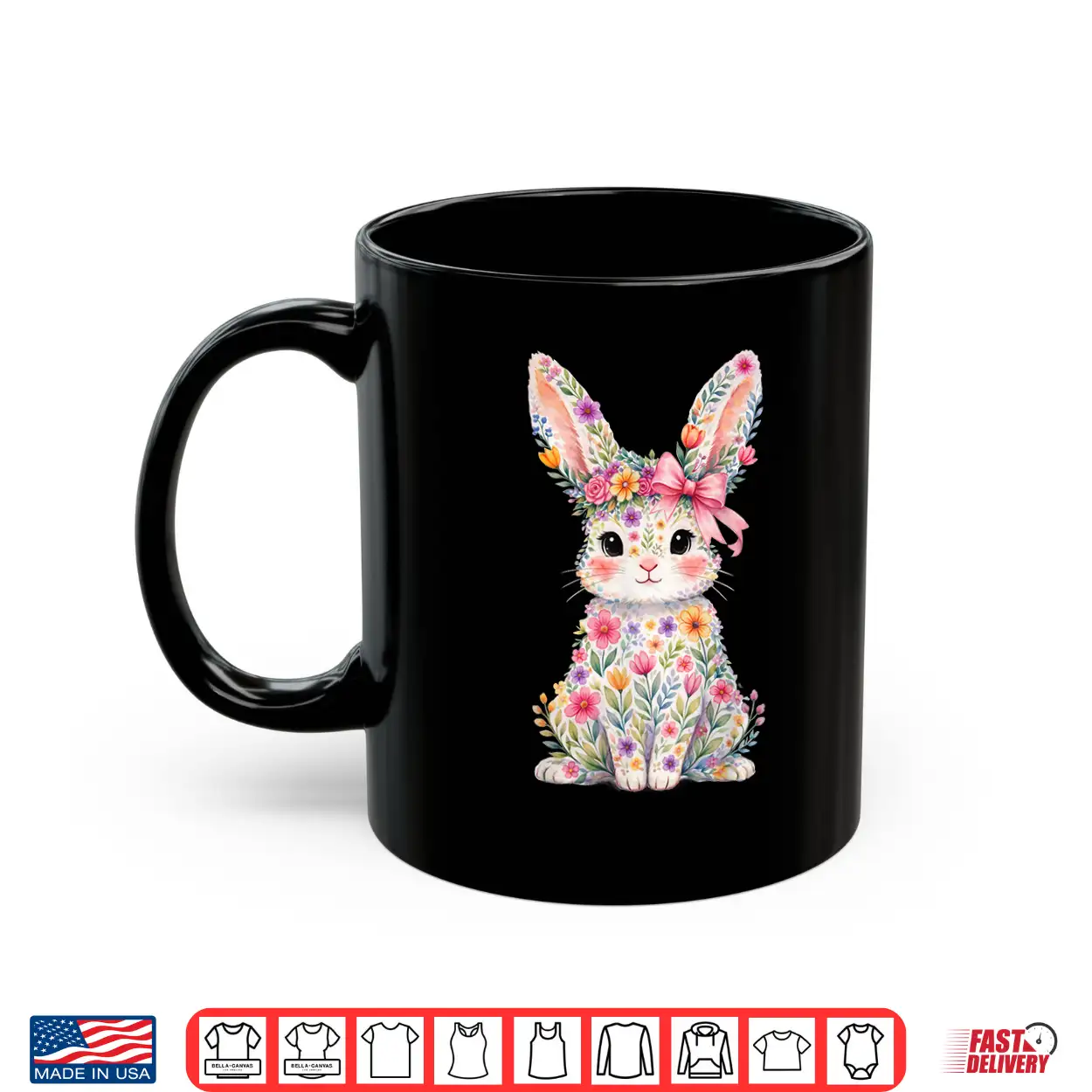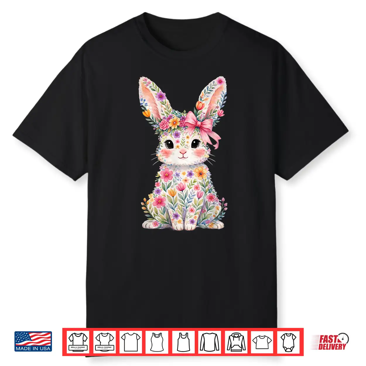 Cute Pink Flower Bunny Rabbit Happy Easter Shirt Women Girls Shirt