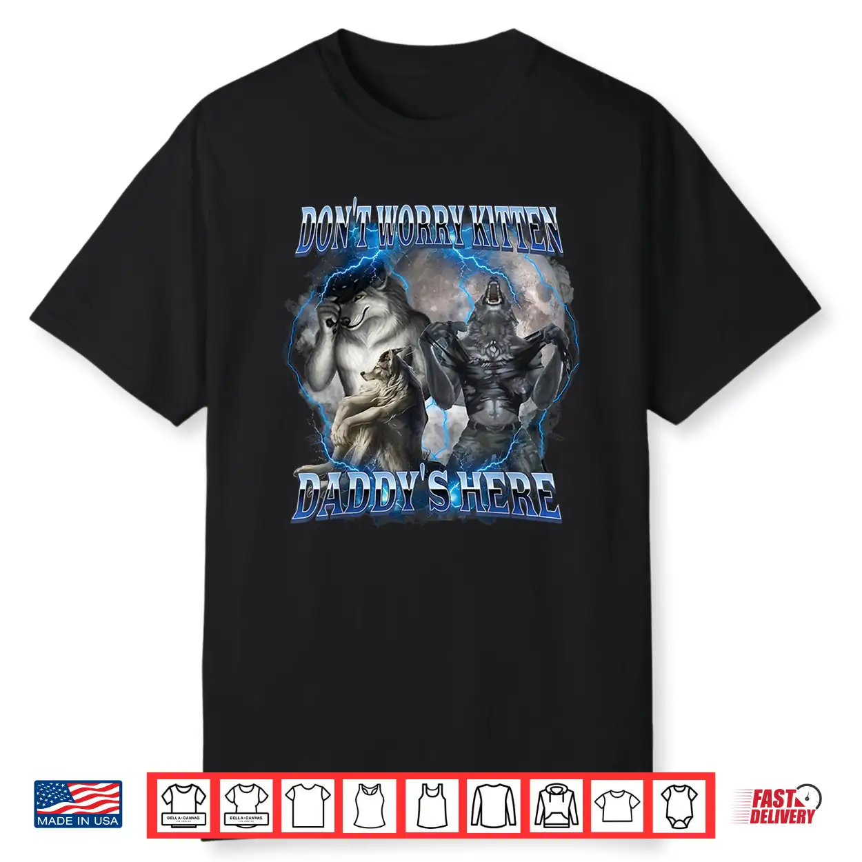 Don’T Worry Kitten Daddy’S Here Alpha Wolf Male Meme Shirt