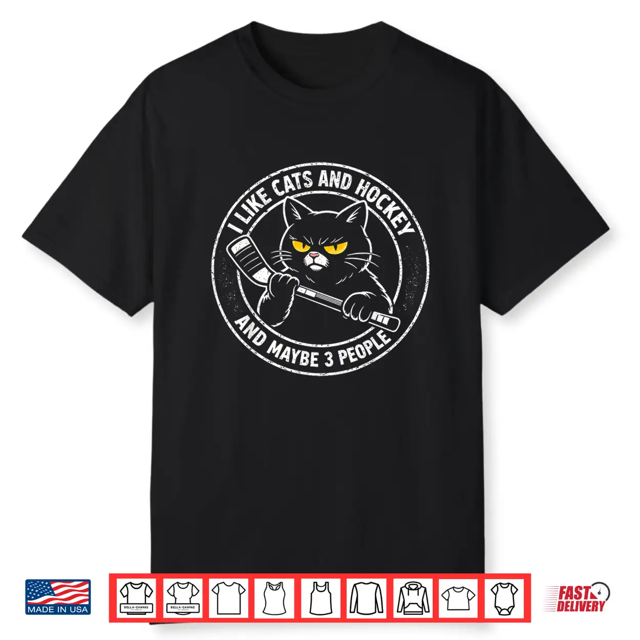 Funny I Like Cats Hockey And Maybe 3 People Sarcatic Graphic Shirt