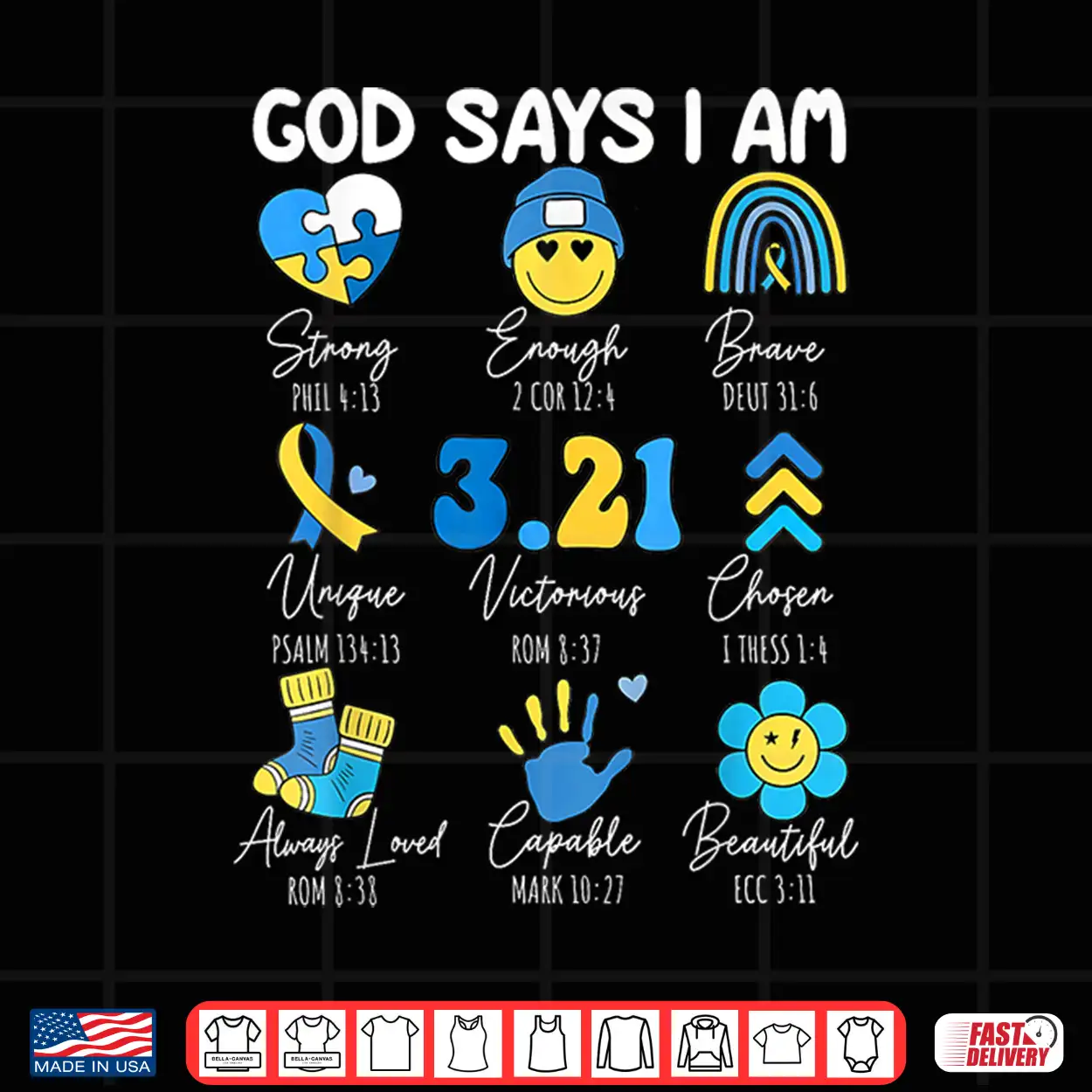 God Says I Am Christian Bible Verse Down Syndrome Awareness Shirt