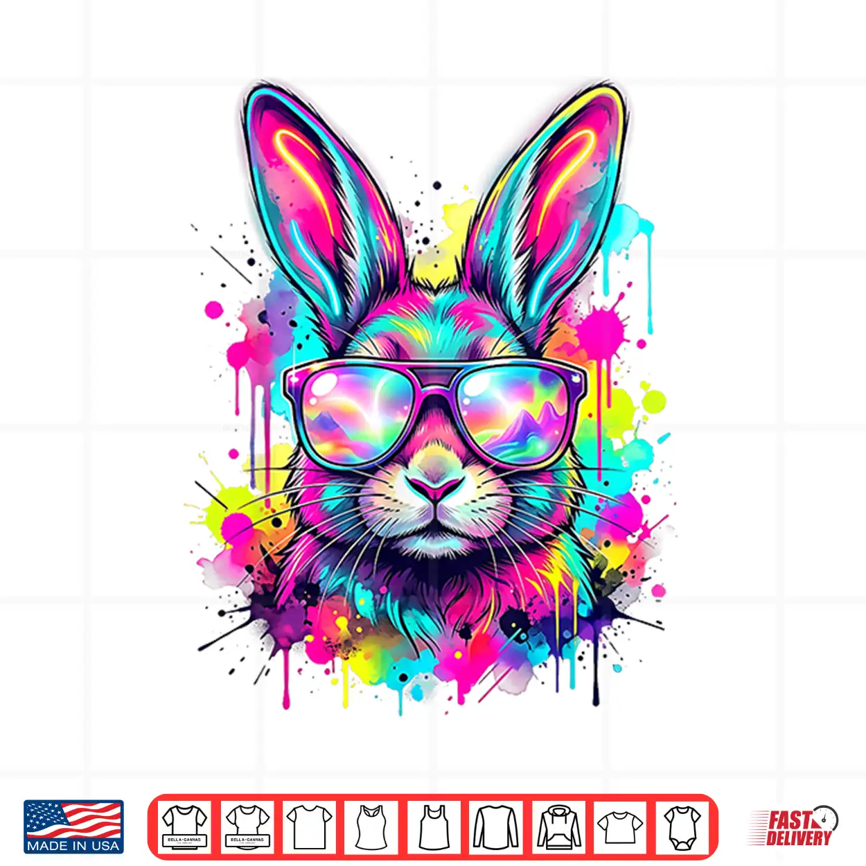 Happy Easter Bunny Face Tie Dye Bunny Rabbit With Glasses Shirt