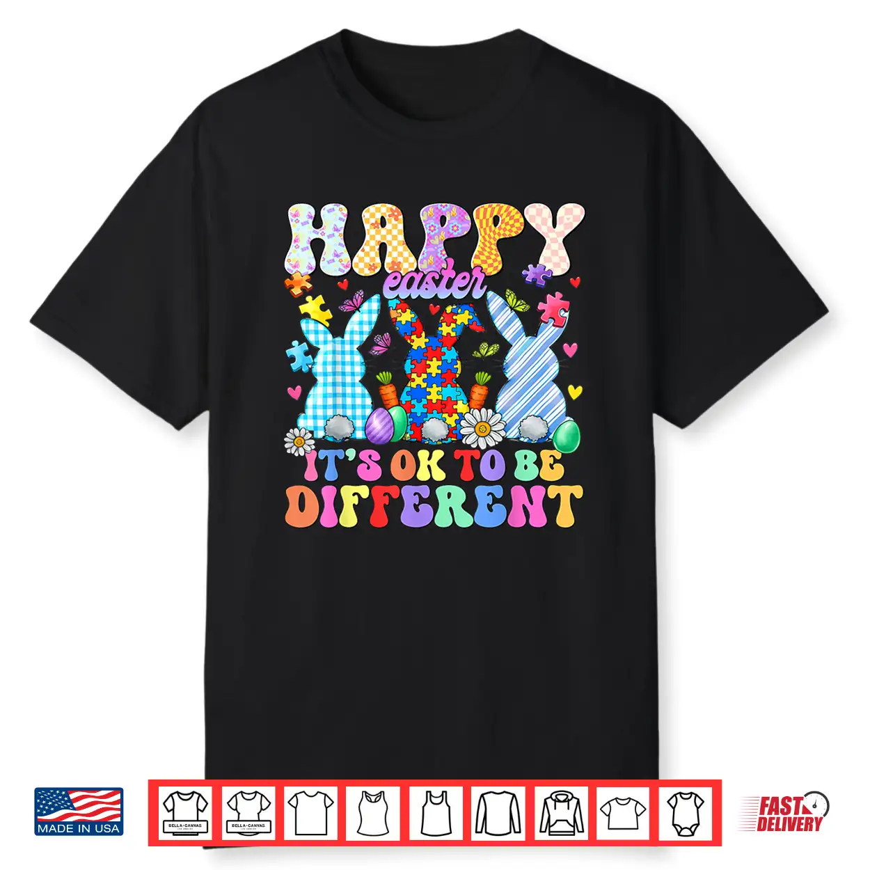 Happy Easter Its Ok To Be Different Bunny Autism Awareness Shirt