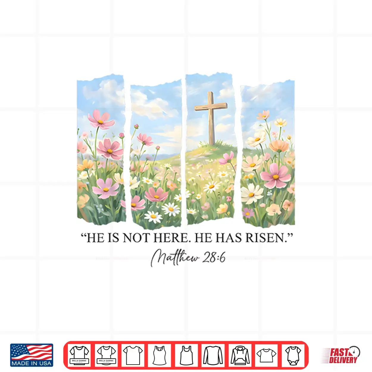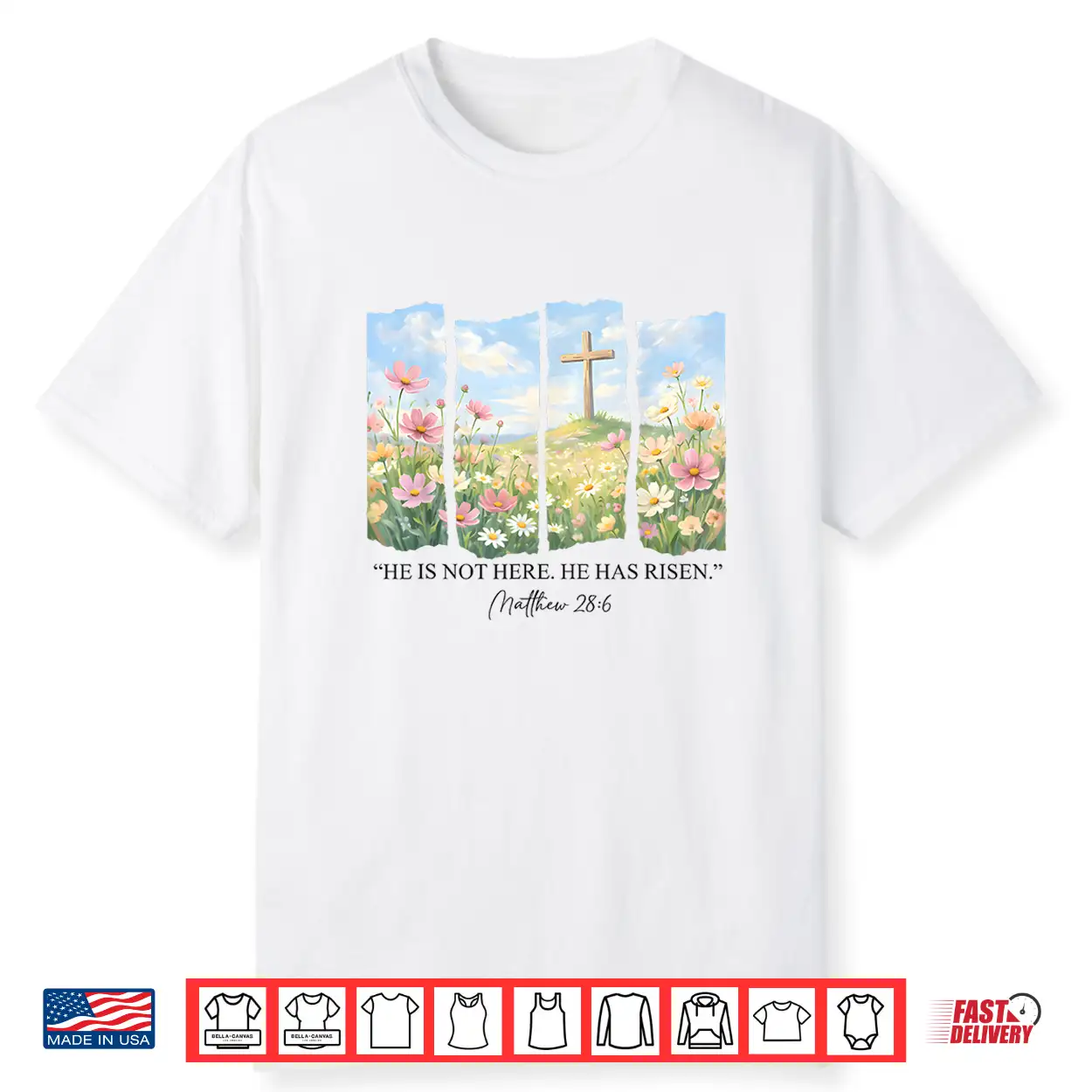 He Is Risen Christian Wildflower Happy Easter Women Girls Shirt