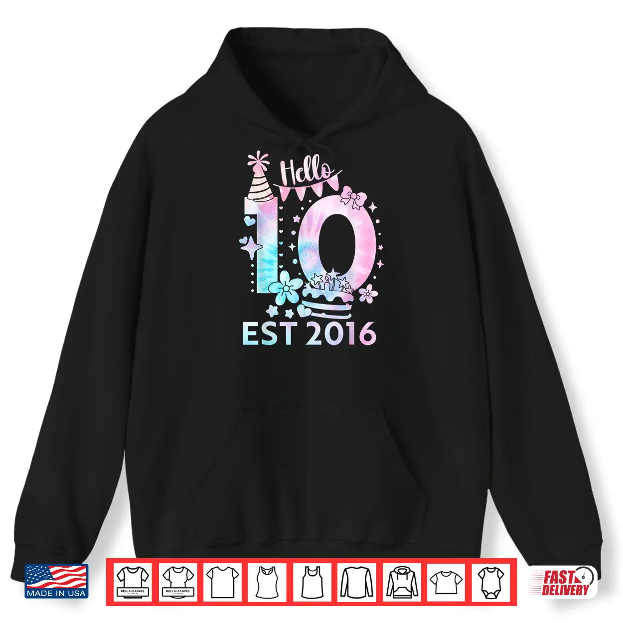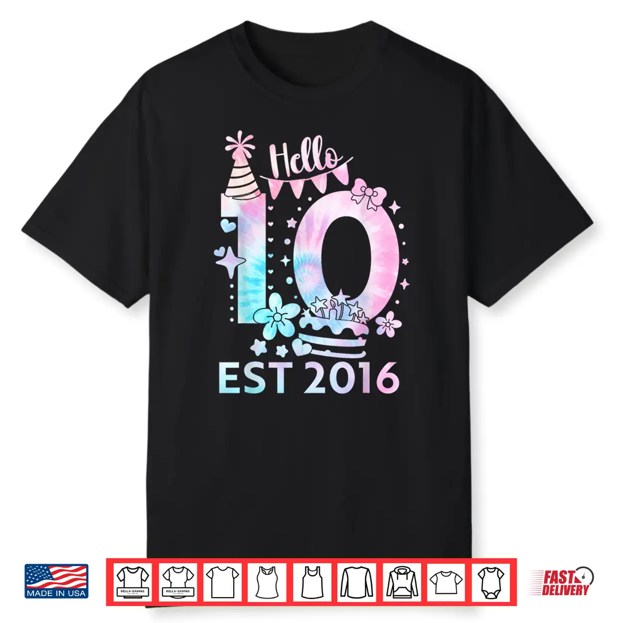 Hello Ten 2016 Cute 10Th Birthday Tie Dye 10 Year Girl Boy Shirt