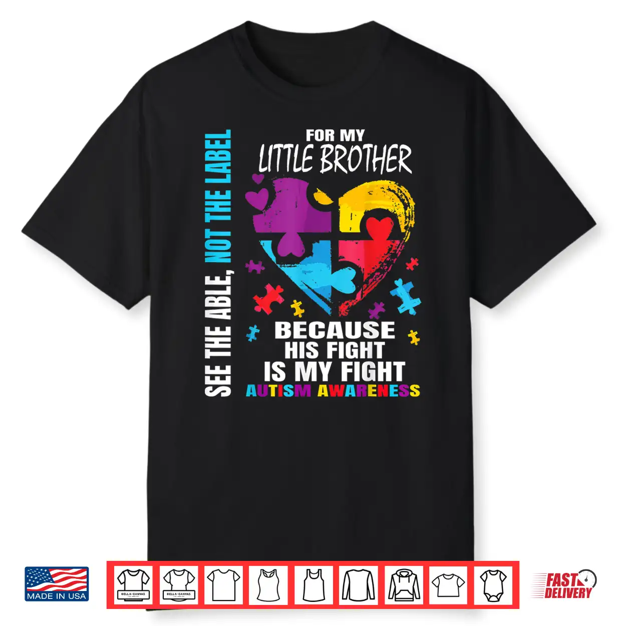 His Fight Is My Fight Blue Little Brother Autism Awareness Shirt