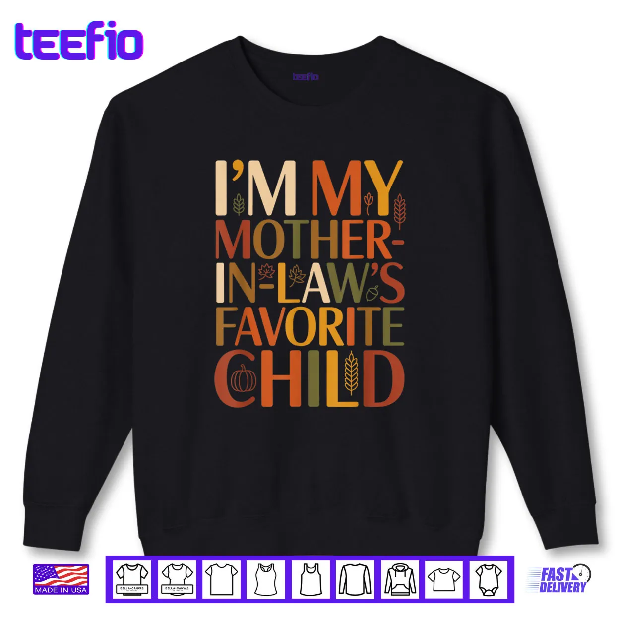 I’m My Mother in Law’s Favorite Child Fall Thanksgiving Typo Shirt, Mother in Law’s Favorite Child, Thanksgiving, Funny, Family Humor, Witty