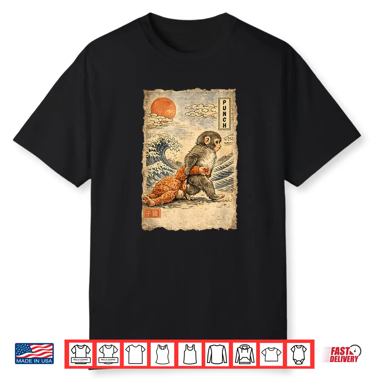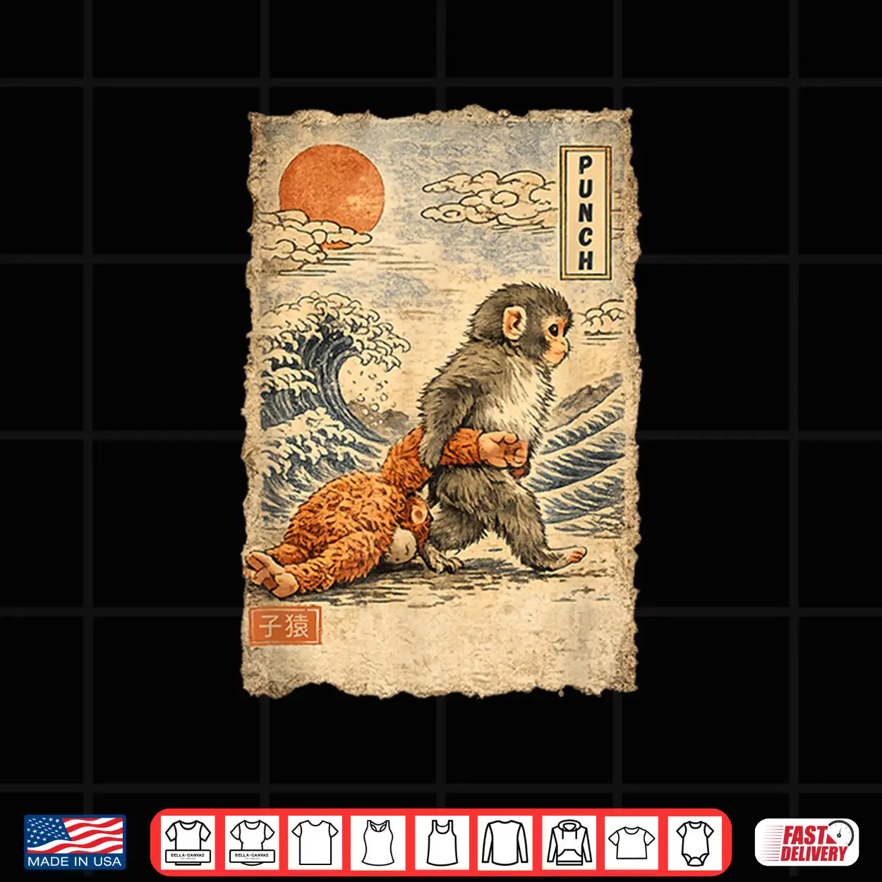 Kawaii Baby Monkey Punch Cute Japanese Macaque Ukiyo E Art Shirt