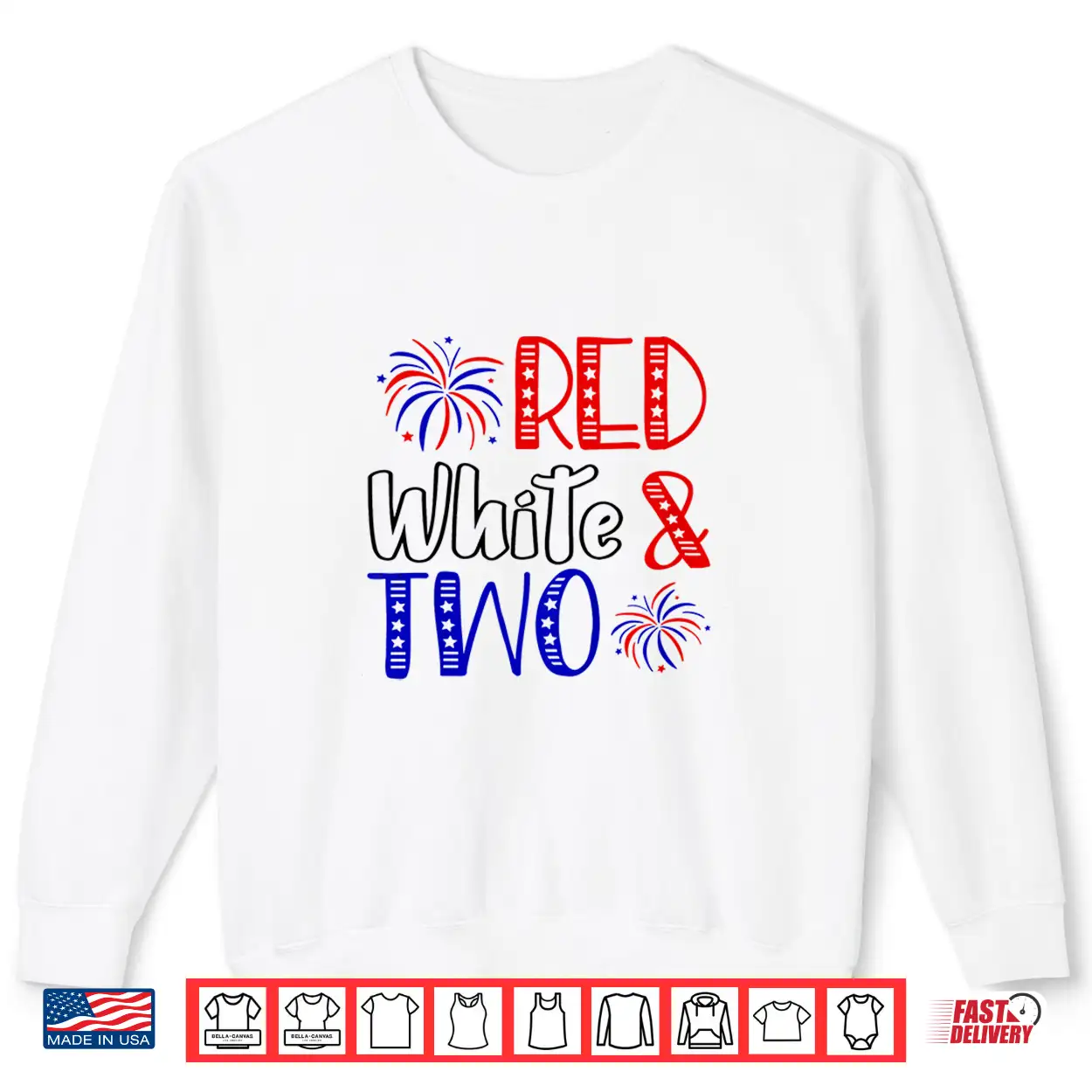 Kids Red White & Two 2Nd Birthday 4Th Of July Independence Day Shirt
