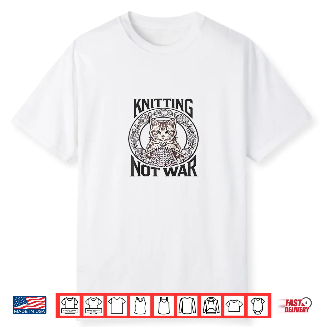 Knitting Not War Cat Yarn Lover Vintage Style Shirt
