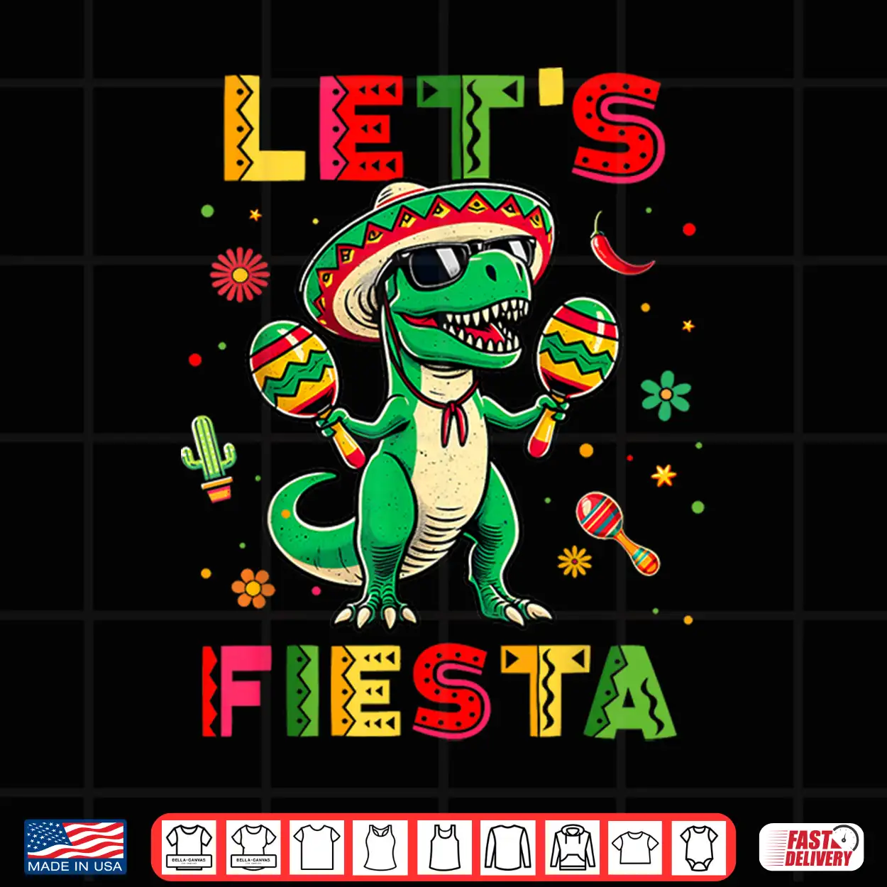 Let’S Fiesta Dinosaur Cinco De Mayo Boys Kids Mexican Party Shirt
