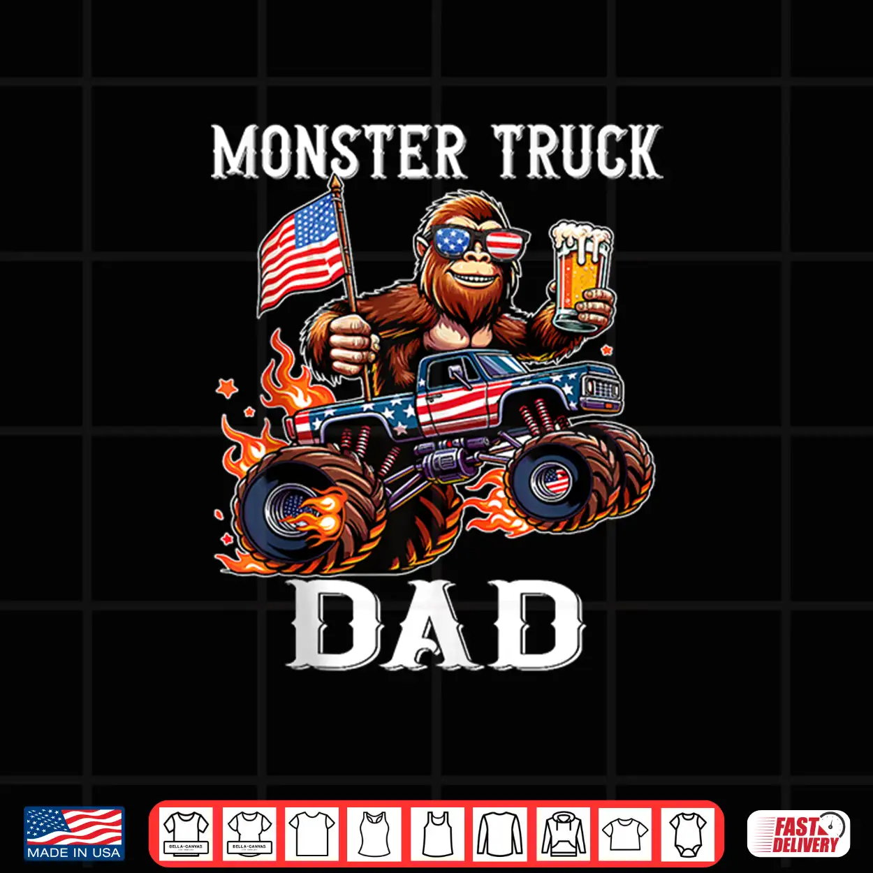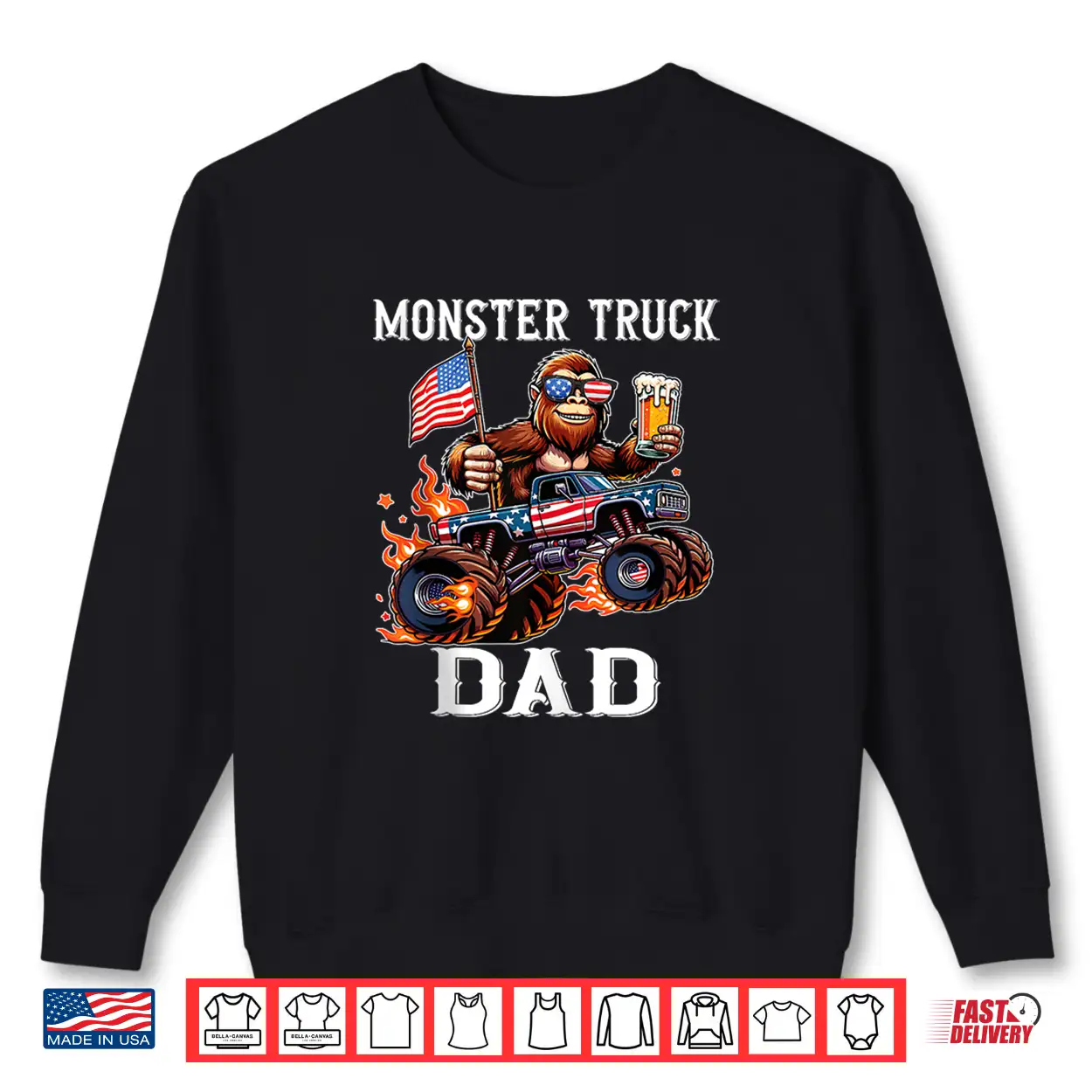 Monster Truck Dad Racing Bigfoot Beer Usa Flag Patriotic Shirt