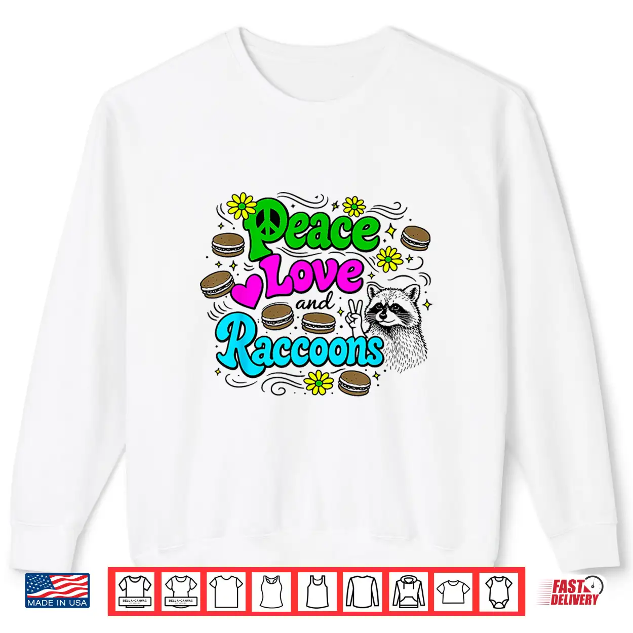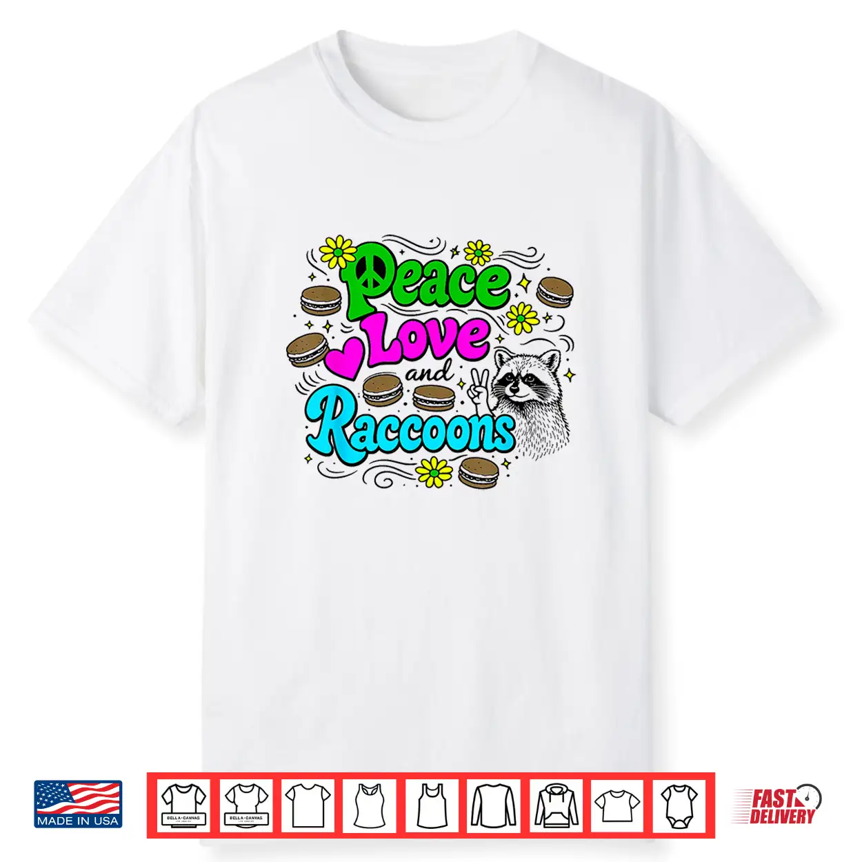 Peace Love And Raccoons Flower Power Hippie 1960S Cartoon Shirt