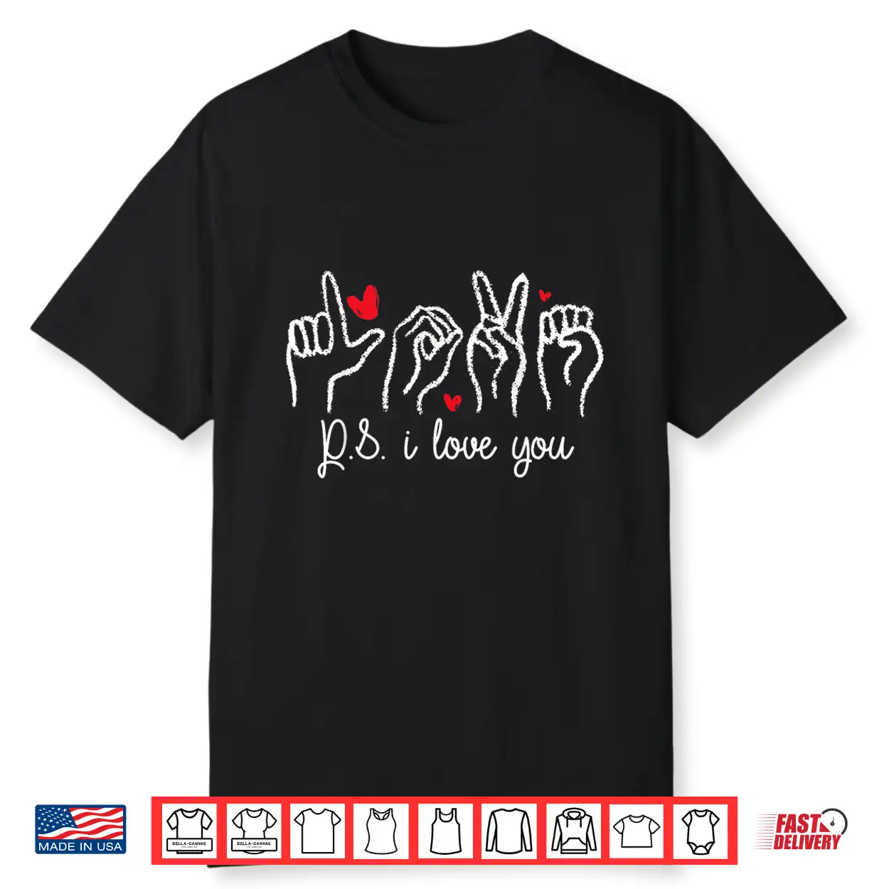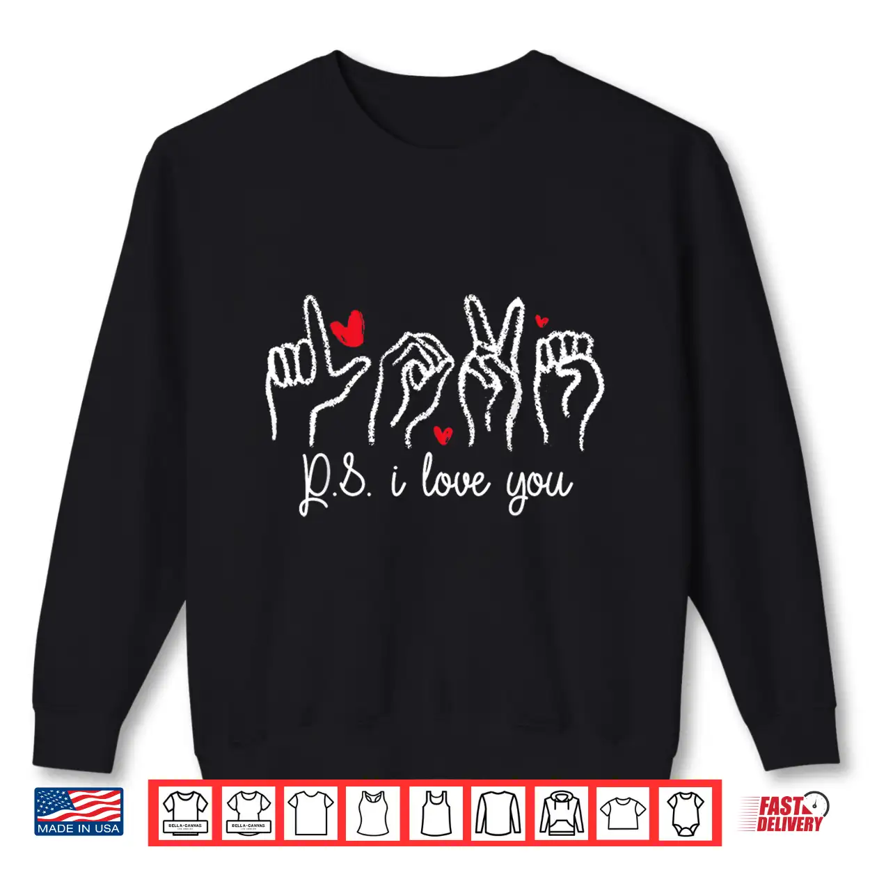 Ps I Love You Day Valentine’S Day Purple Asl Love Hand Sign Shirt