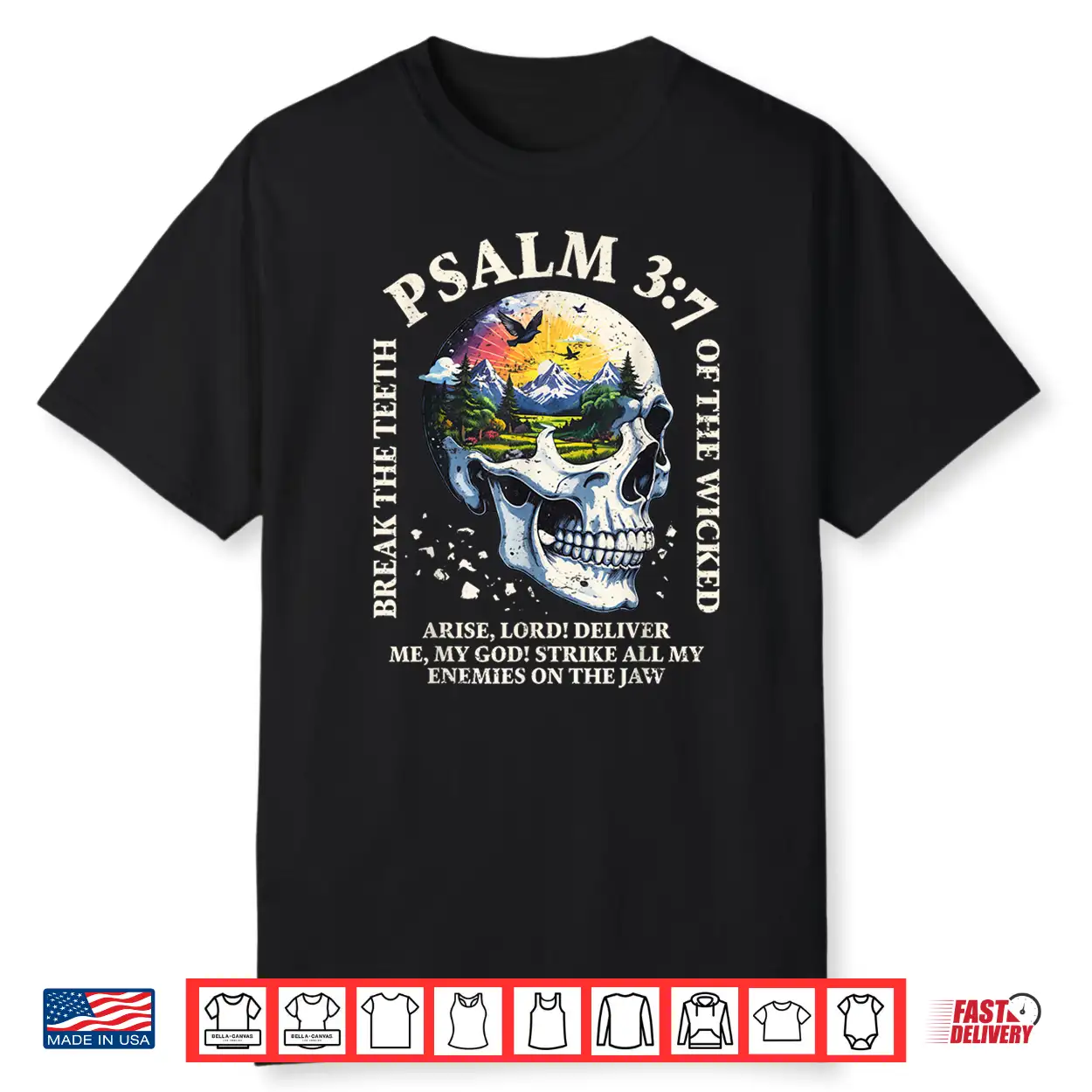 Psalm 3 7 Sunset Skull Christian Faith Religious Bible Verse Shirt