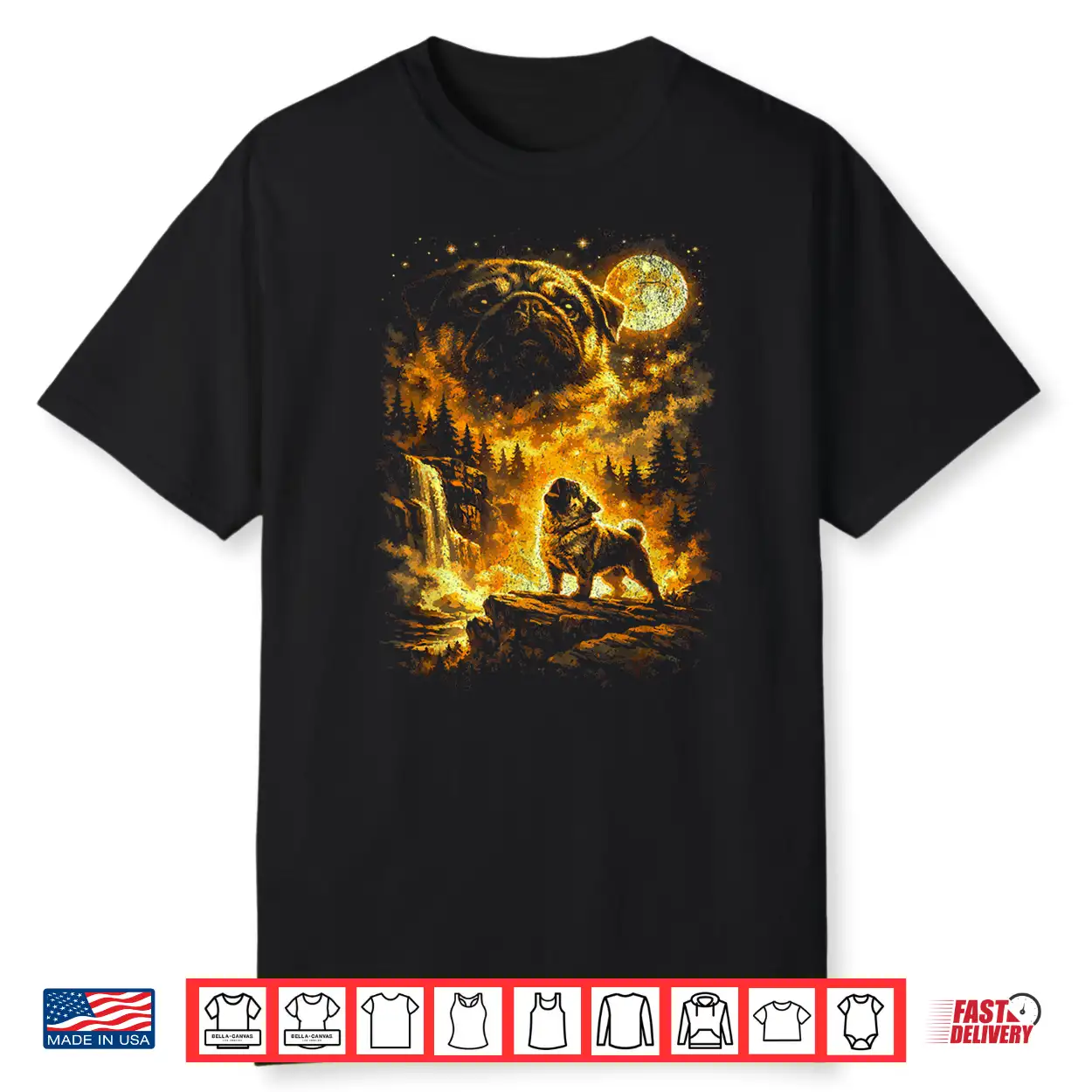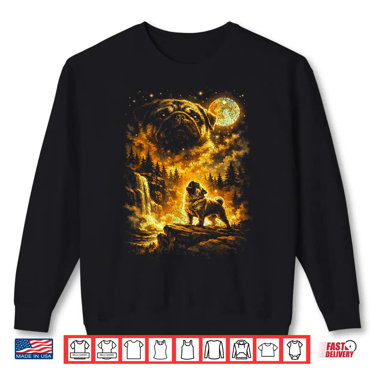 Animal Art, Canine, Night, Graphic, Whimsical, Humor, Pet Owner, Mystical, Dog Lover, Pug Howling At Moon