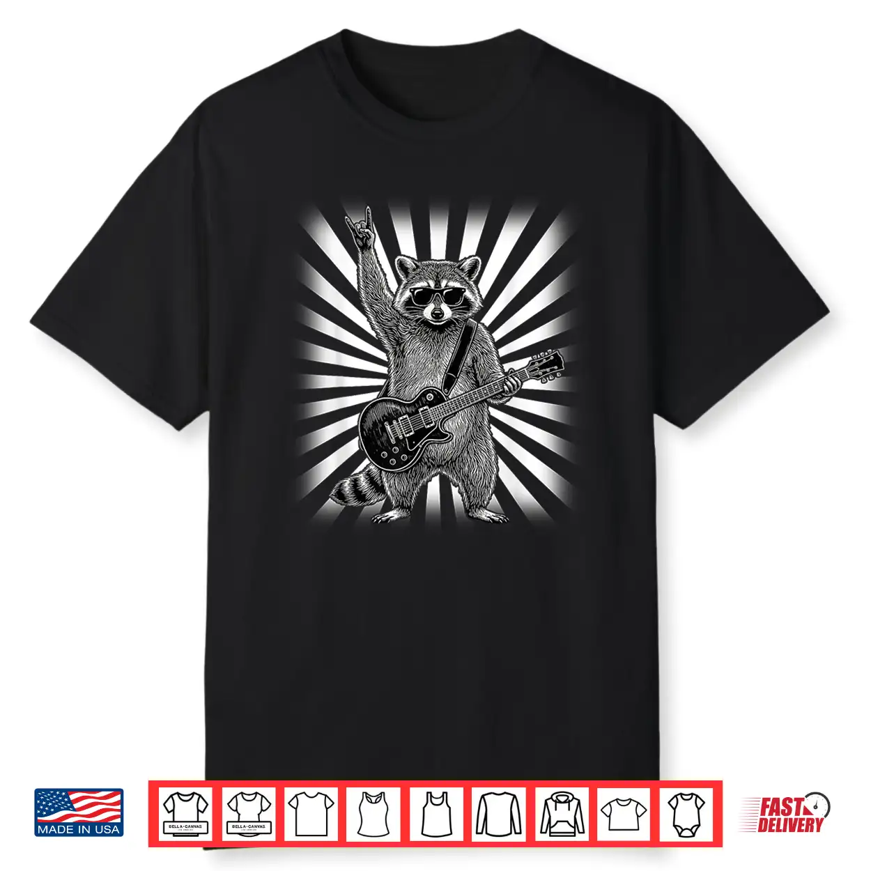 Raccoon Rock Music Band Guitar Men Women Kids Funny Raccoon Shirt
