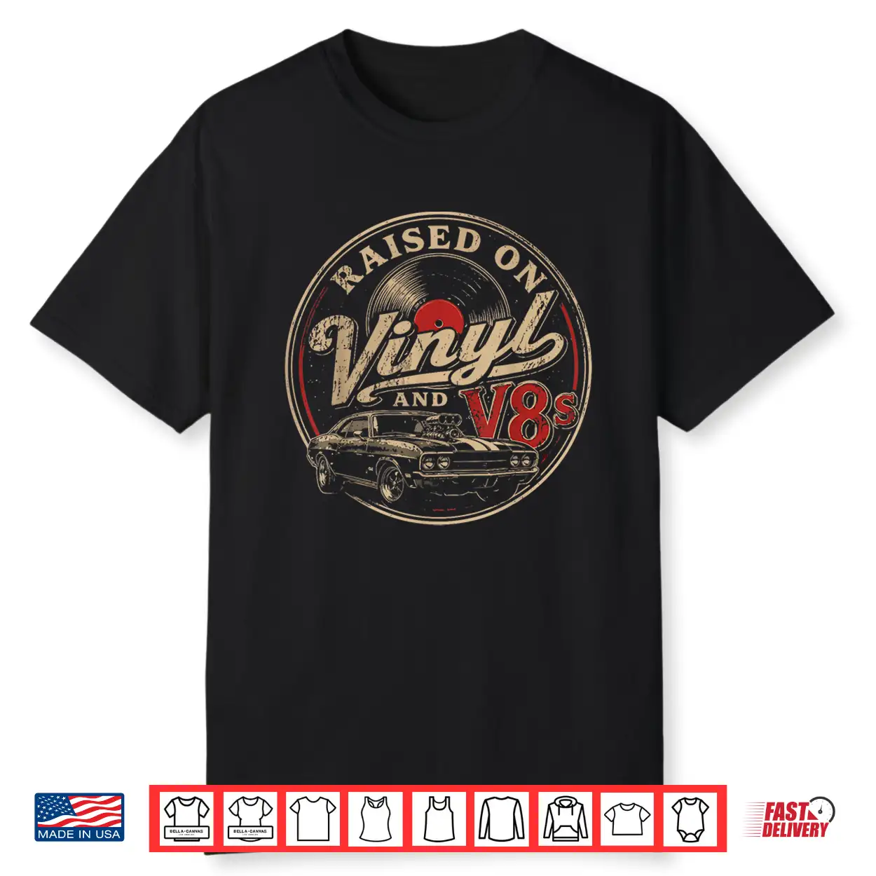 Raised On Vinyl And V8S Retro Car Music Culture Shirt