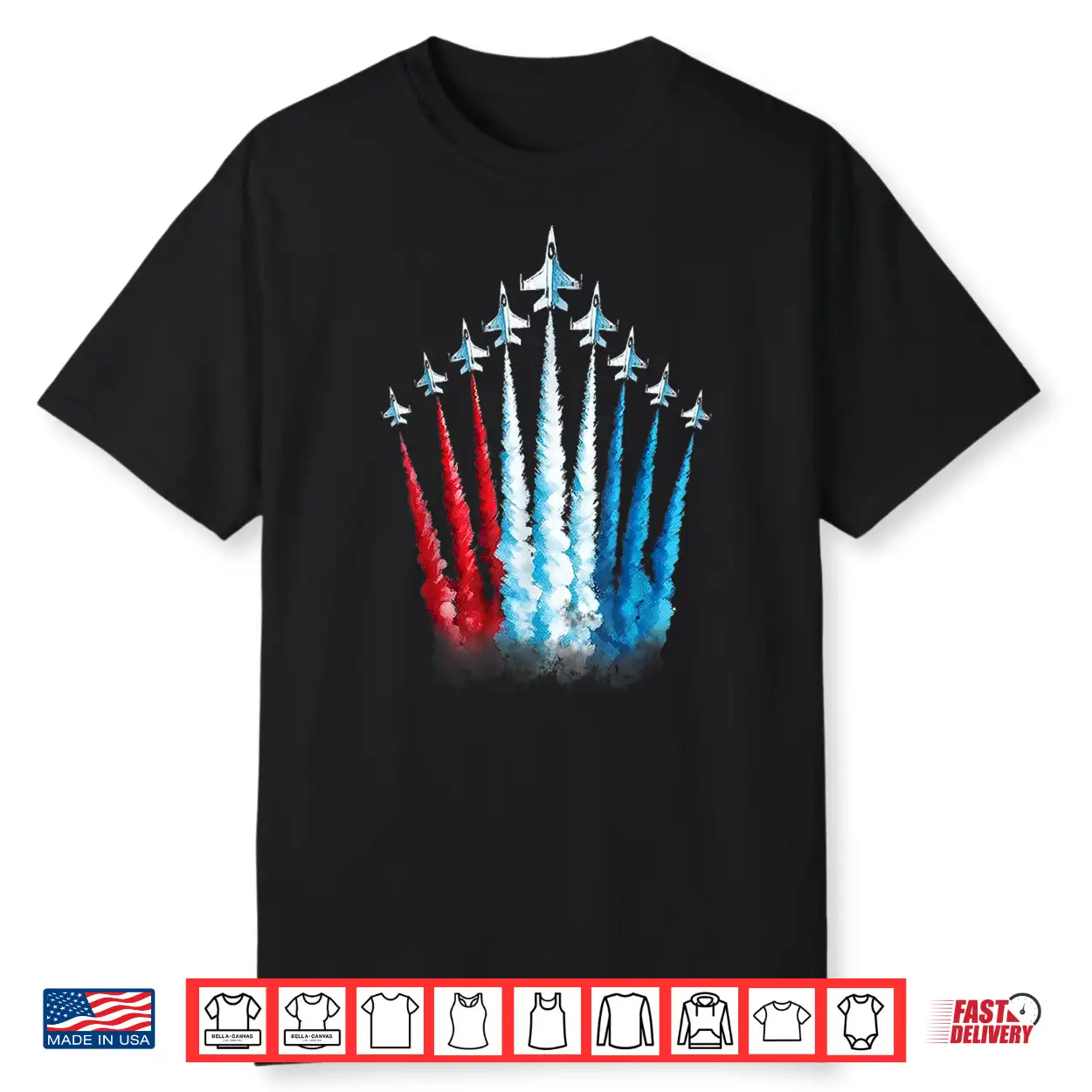 Red White Blue American Us Flag Fighter Jet 4Th Of July Boys Shirt
