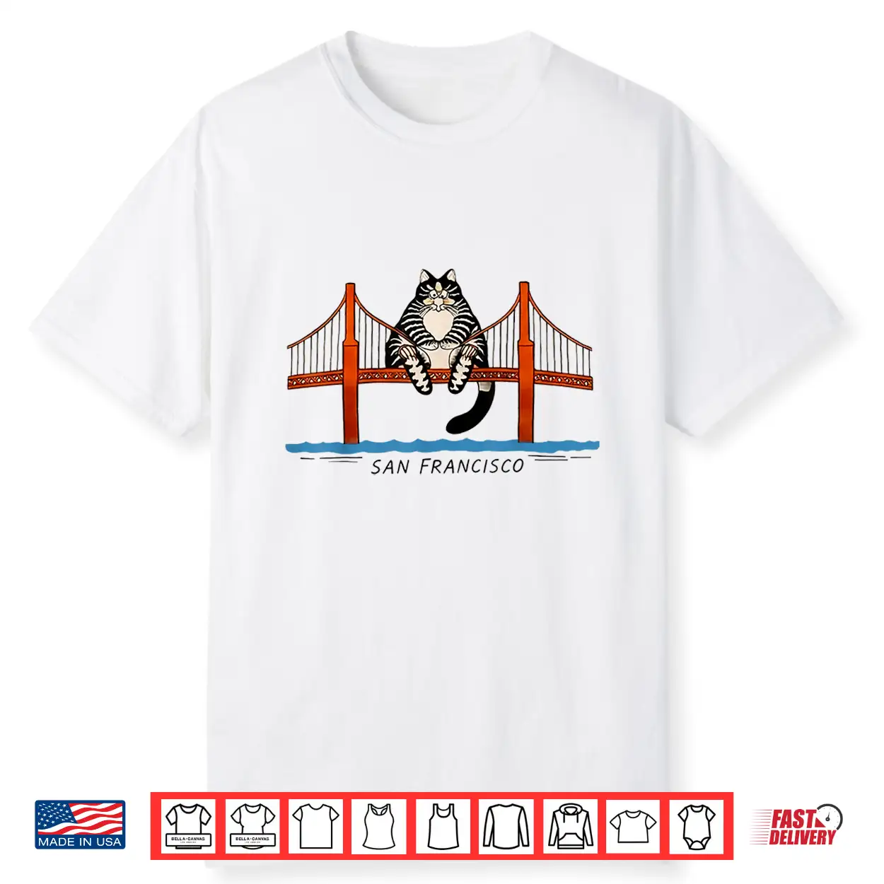 San Francisco Cat Golden Gate Bridge Book Lover Shirt