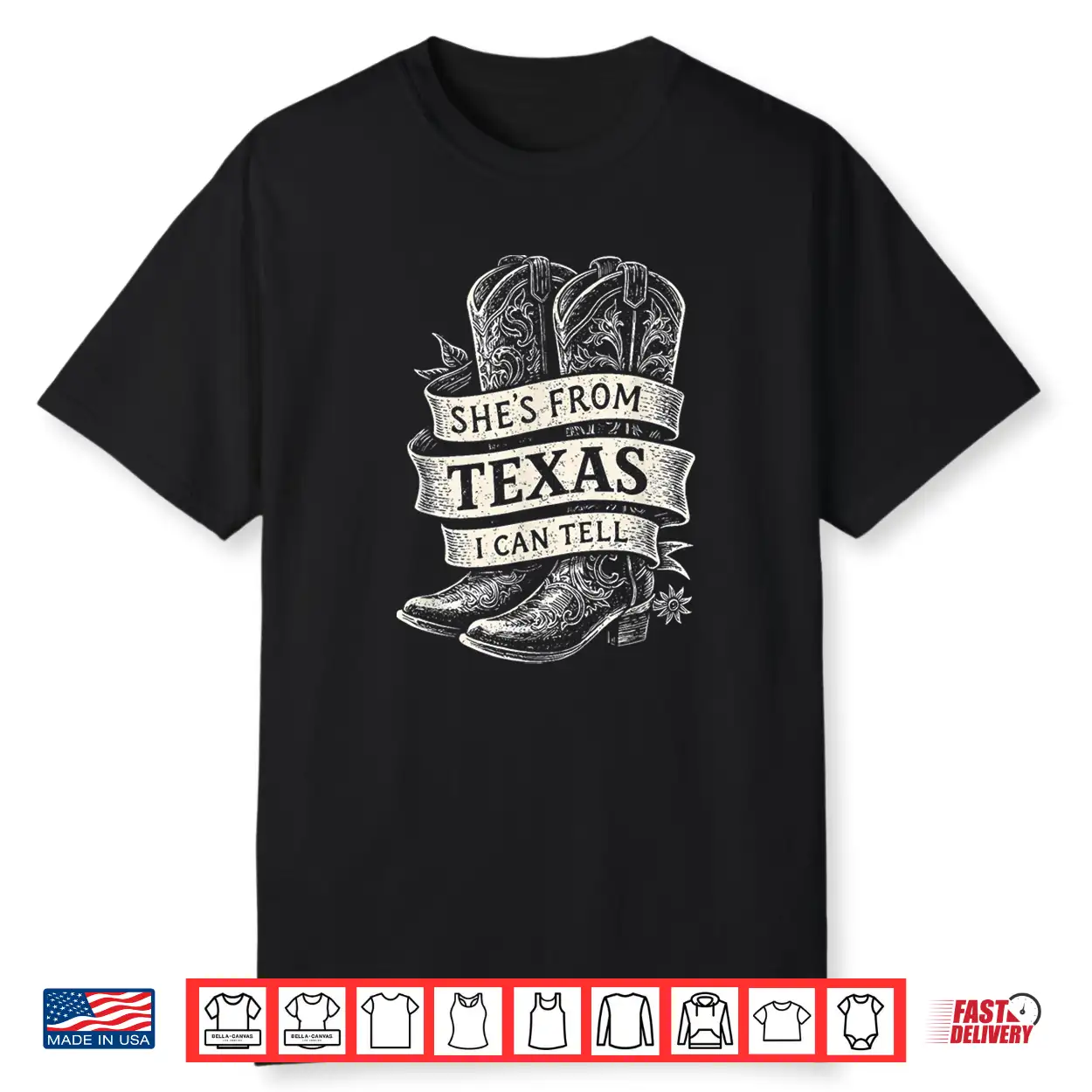 She’S From Texas I Can Tell Vintage Cowgirl Retro Country Shirt