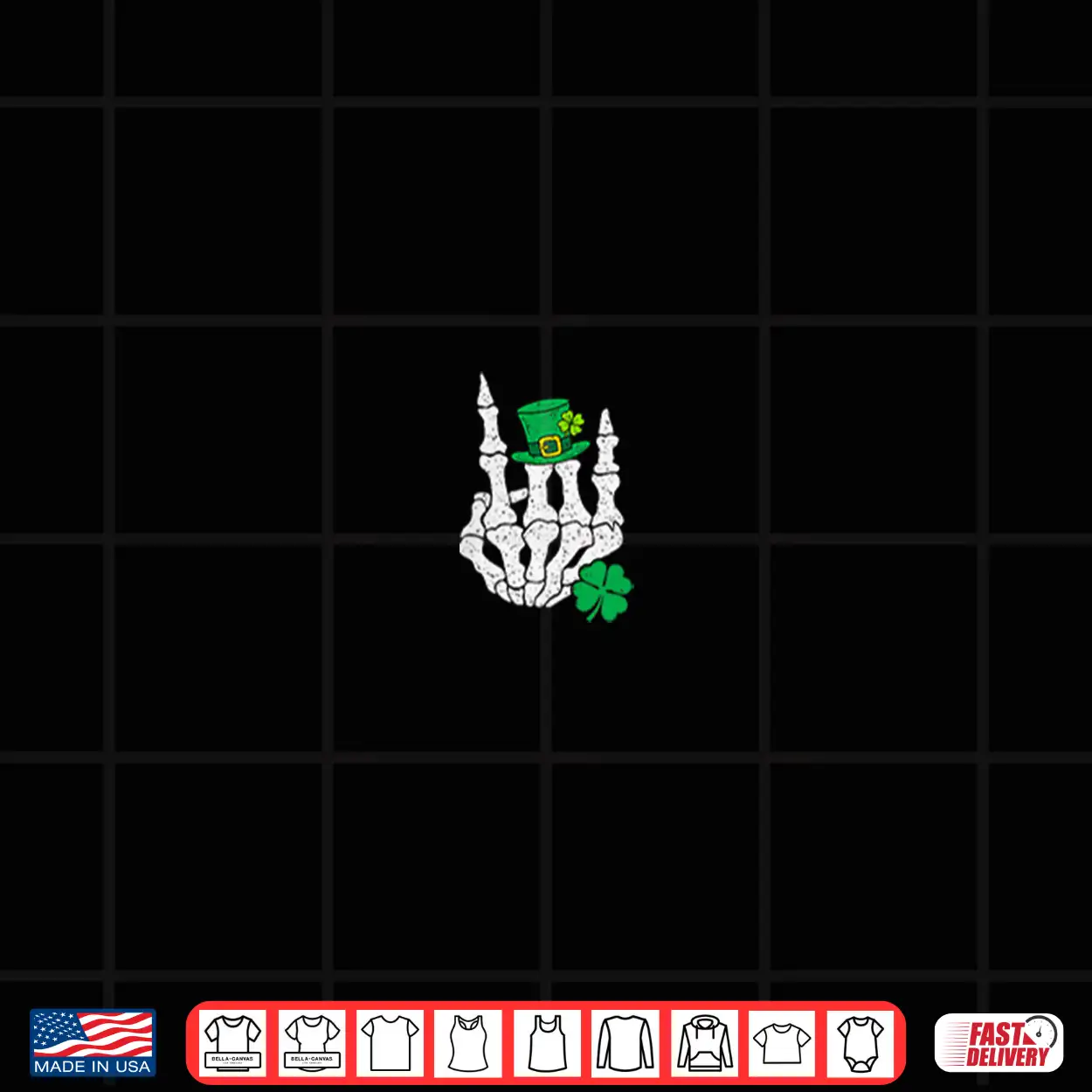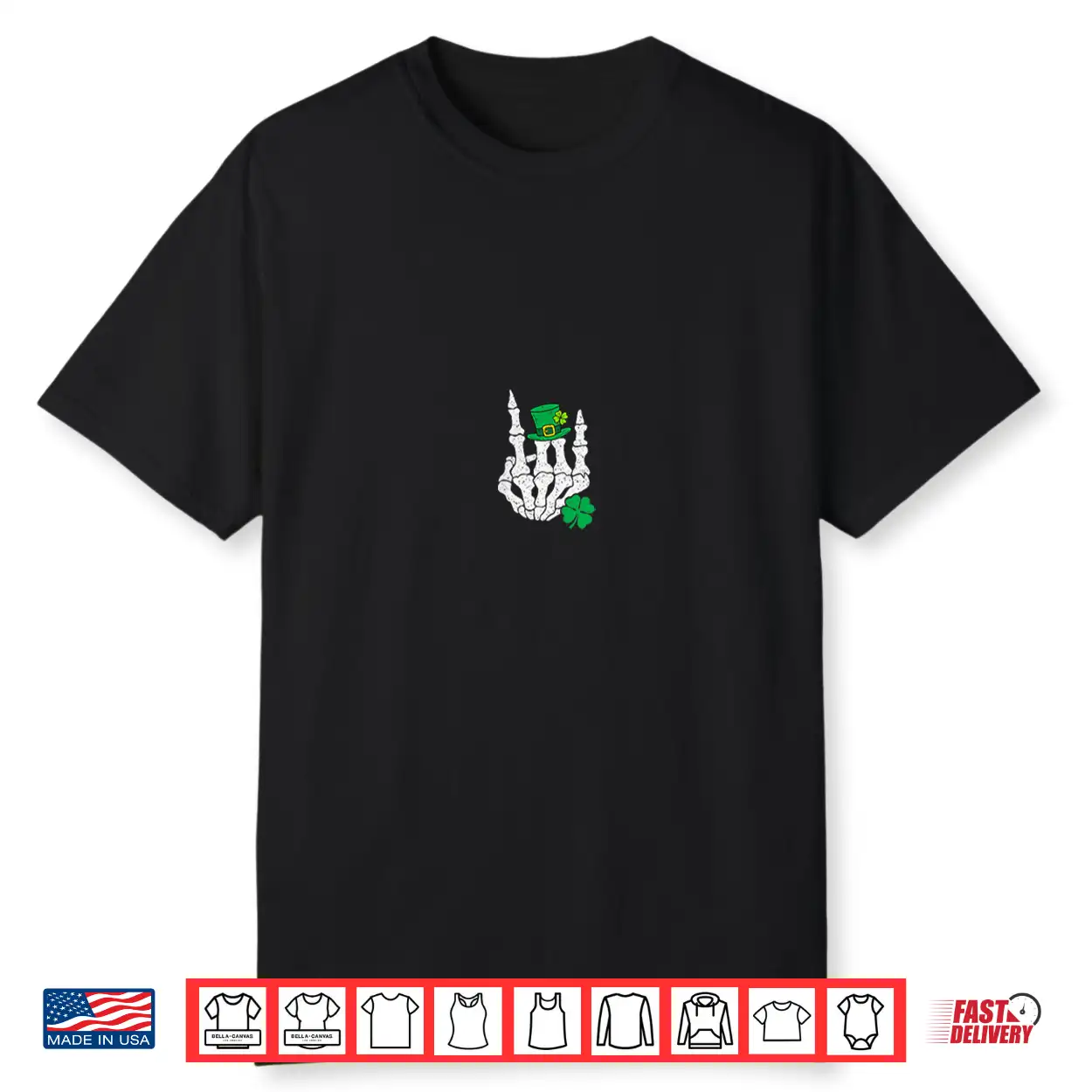 Skeleton Hand Rock Shamrock Pocket St Patricks Day Men Women Shirt