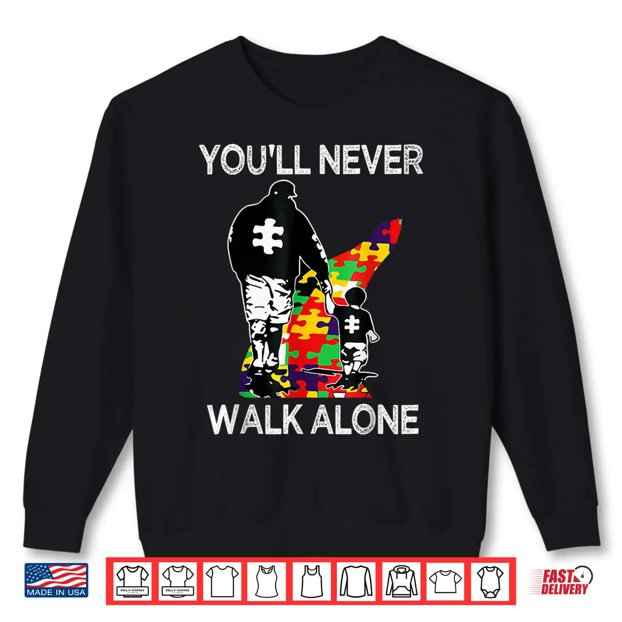 Support Alone Puzzle Autism Dad Youll Never Walk Professional Shirt