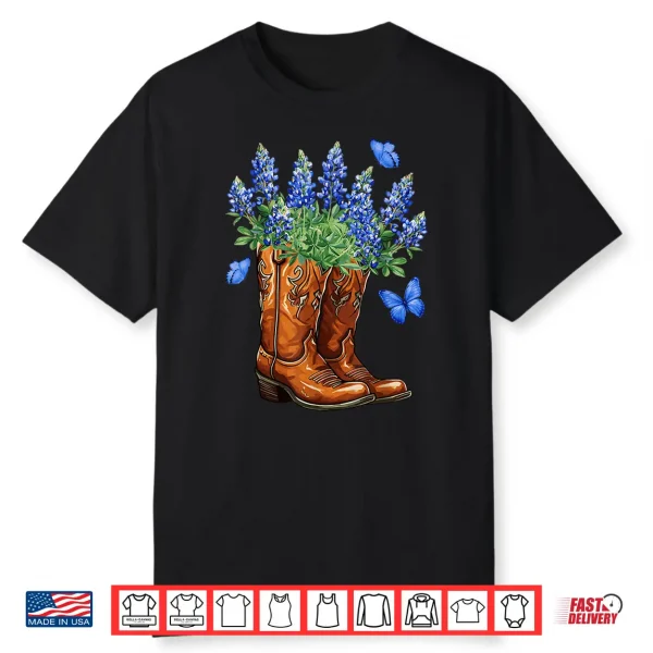 Texas Independence Day Cowgirl Boots & Bluebonnet Flowers Shirt