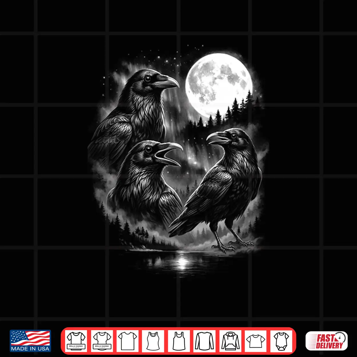 Three Black Bird Crow Howling Moon Vintage Graphic Shirt