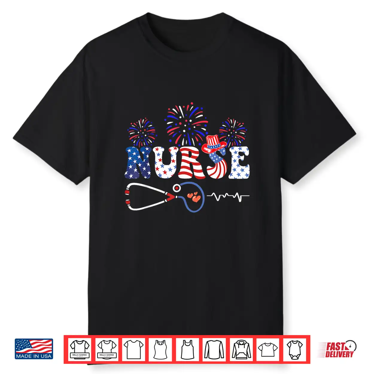 Usa American Flag Patriotic Nurse Stethoscope 4Th Of July Shirt