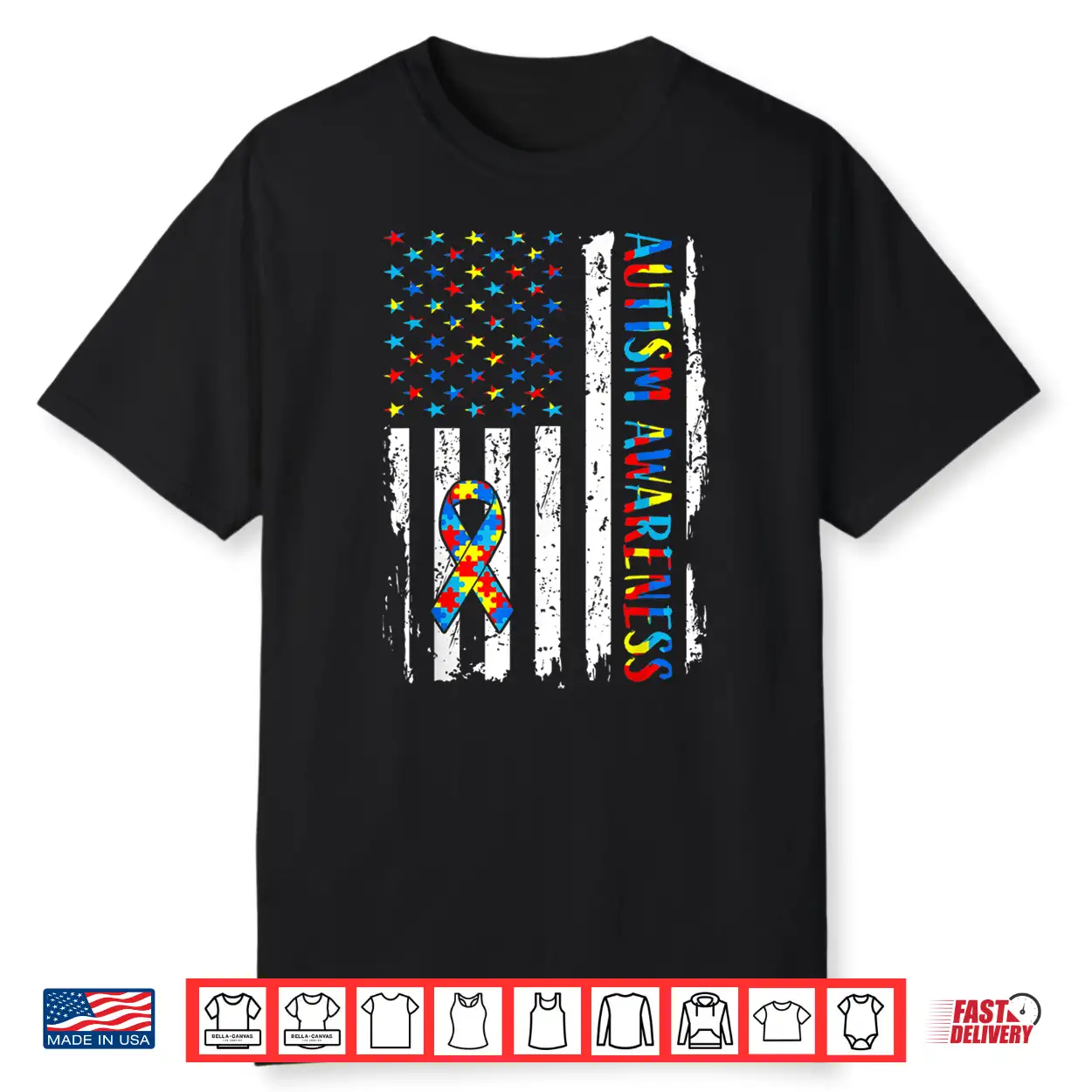 Usa Flag Autistic Awareness Autism Awareness Mom Dad Shirt
