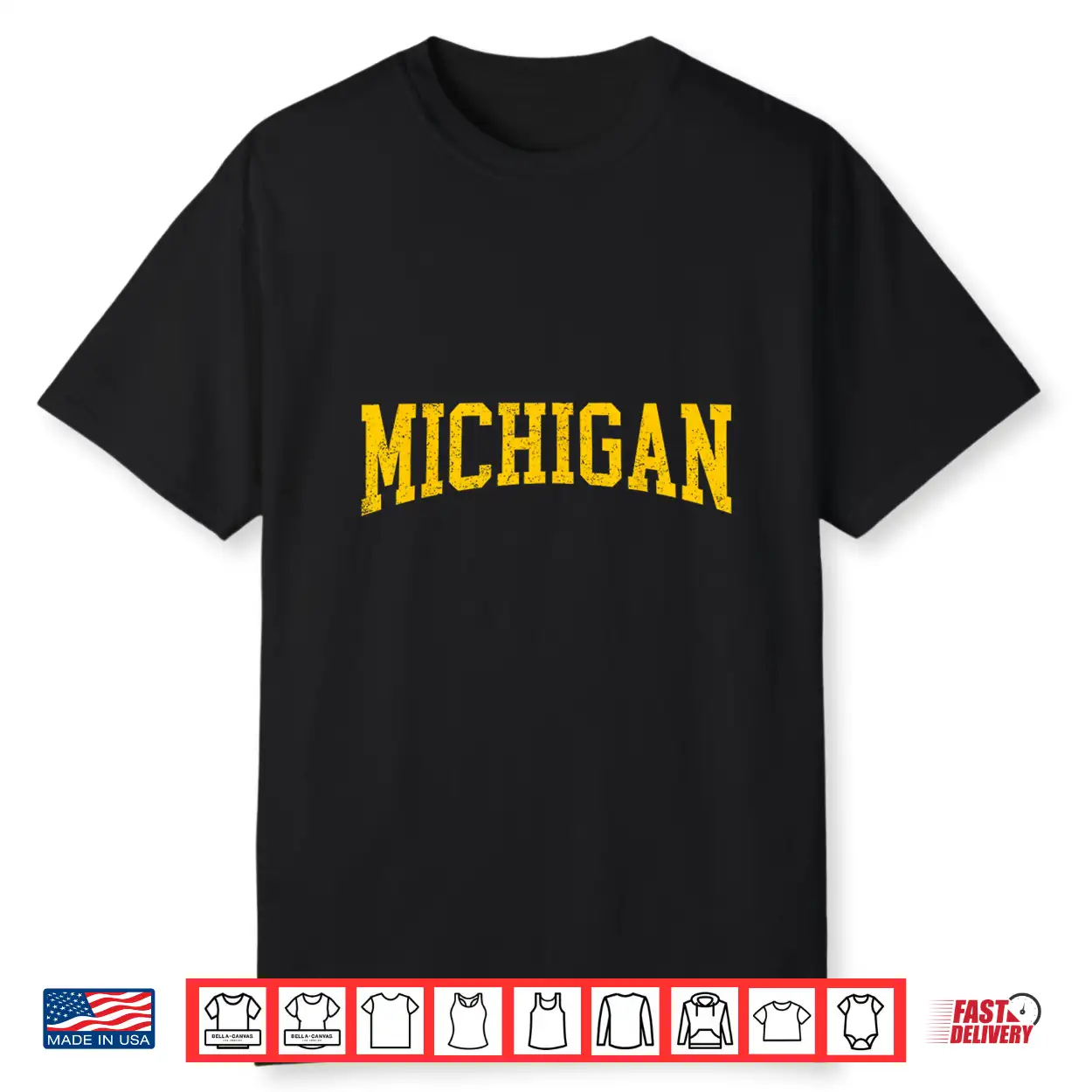 Vintage Michigan Look Maize Blue Men Retro Font Michigan Tee Shirt