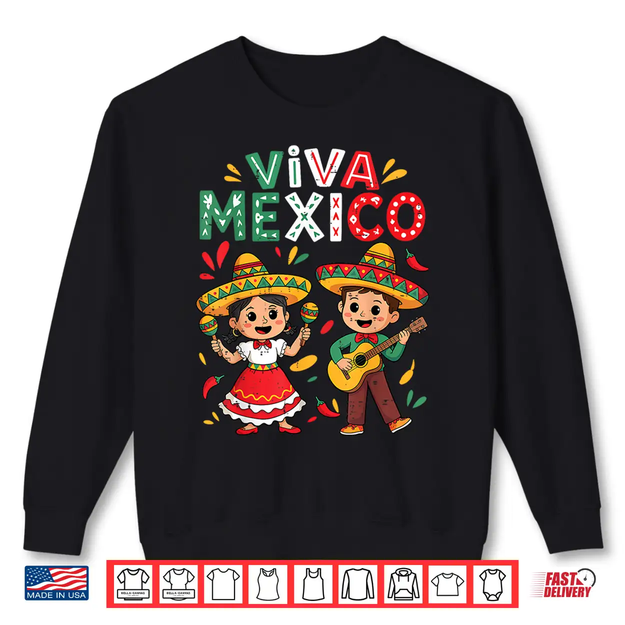 Viva Mexico Guitar Boy Girl Mexican Independence Day Kid Shirt