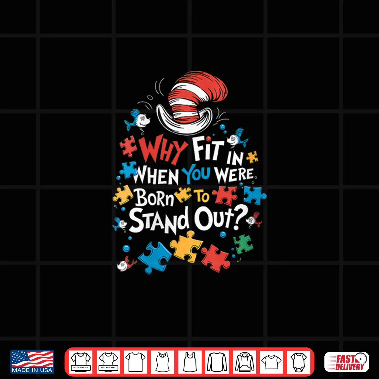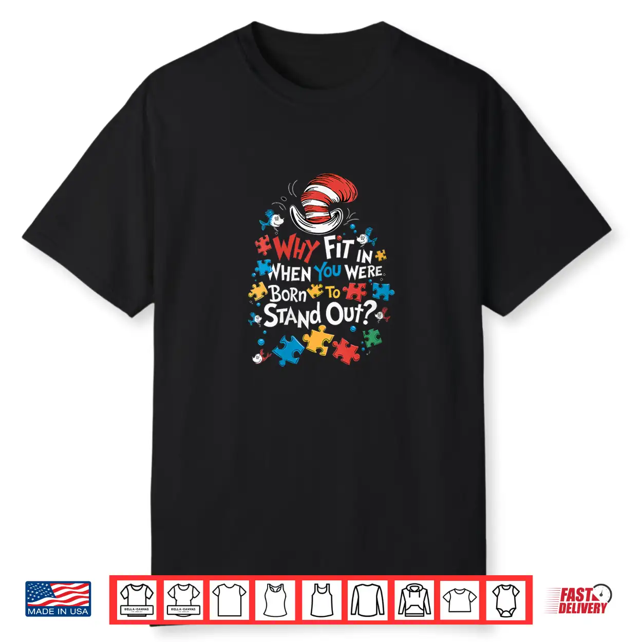 Why Fit In Autism Awareness Doctor Teacher Cat In Hat Shirt