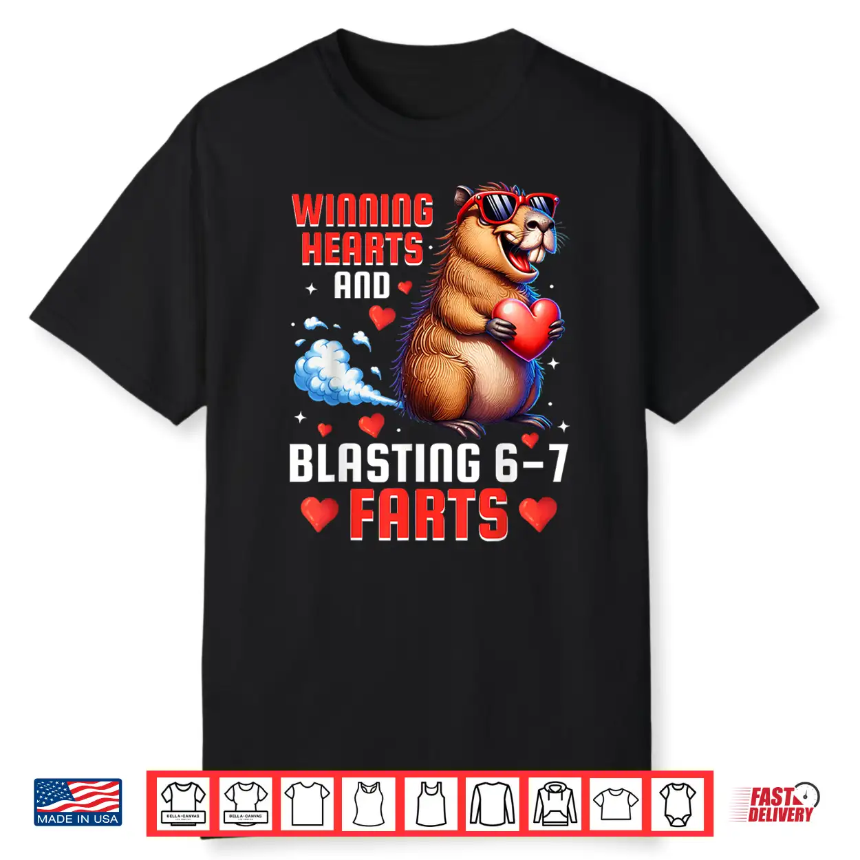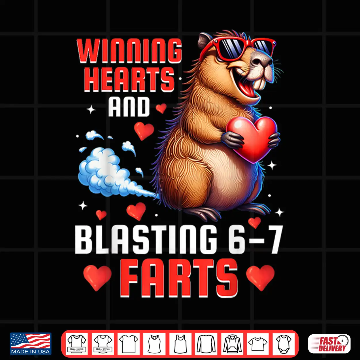 Winning Hearts 67 Meme Capybara Kids Boys Valentine’S Day Shirt